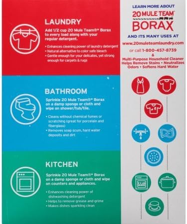 Why the name 20 Mule Team?*Teams of mules were used to move millions of pounds of Borax from remote mines in inaccessible Death Valley to the railroad at Mojave.Originally, teams of eight and 10 mules were used, but the trek proved too much. A man named Ed Stiles came up with the idea of hitching two 10-mule teams together--twice the normal amount--resulting in a 100-foot-long team that took 10 days to carry 10 tons of borax one way across the desert.In 1894, a steam engine named "Dinah" was brought in to replace the mules, but Dinah was no match for the epic 20 mule team's power. She broke down and was towed back to town by the very mules she tried to replace.The power or Borax works just as hard as the heritage of its mule team, cleaning deep to tackle your toughest mess.