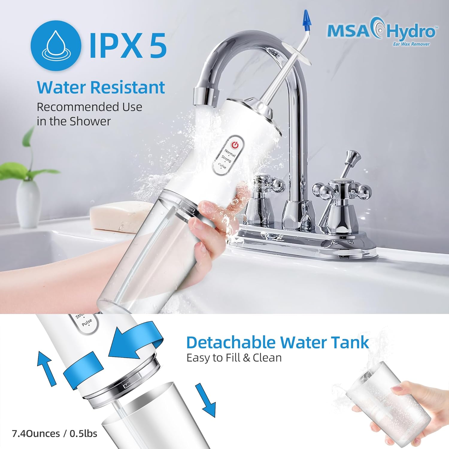 Our MSA Hydro Ear Wax Remover is a handheld rechargeable device that uses water to gently wash out built up ear wax. Our kit has everything you need for safe and easy ear cleaning.