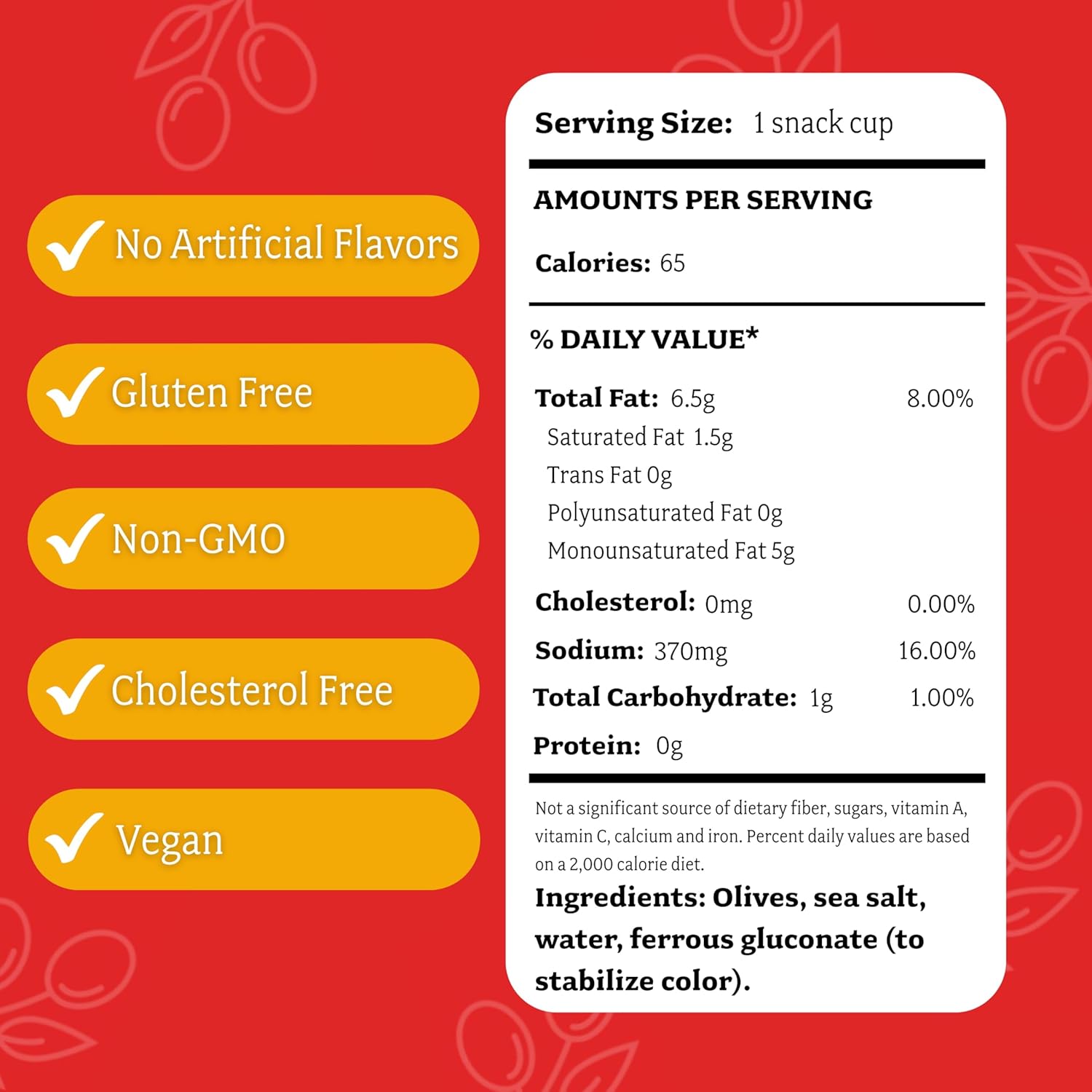 Snack and Go! Black Ripe Pitted Olives. Your favorite savory, salty snack is now on-the-go! These meaty black ripe olives are the perfect addition to any lunch or as a finger-friendly snack. Olive time, anytime!
