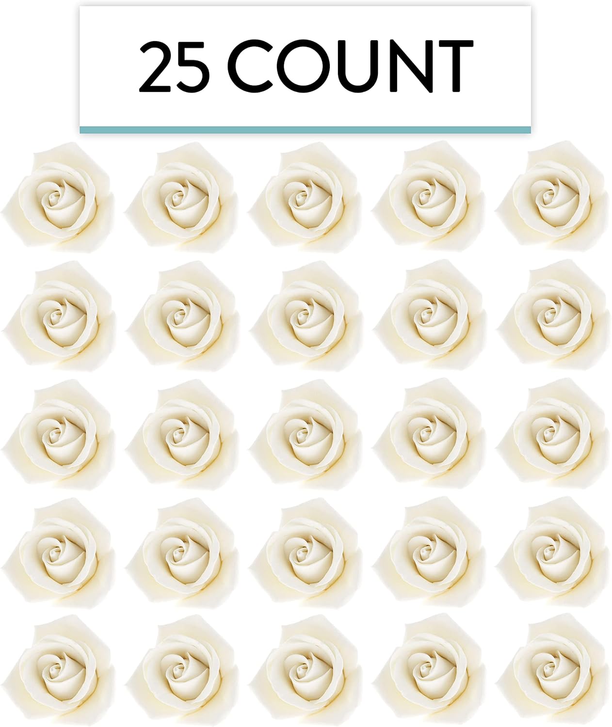 Peace Rose White 2 Inch, 25 Count by Chef Alan Tetreault. This rose is a beautiful flower to decorate your cake or cupcake. Handmade Cake Topper flowers make from gumpaste. These flowers allow beginners or professional decorators alike to achieve wonderful results. These flowers are white and may be further colored with either dusts or air brushing. Each flower is wired to use in a floral spray or to use individually. Flower measures approximately 2 inches. Box of 25. For decorative purposes only as some flowers may contain non-edible floral wire, stamen or pearls.Gumpaste & Royal Icing flowers are brittle and easily damaged in shipping. While we do our best to pack them for you, some breakage is possible.