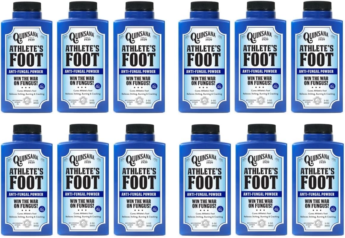 Quinsana Foot Powder was established in 1939 and has been fighting athlete's foot ever since. With active ingredient Miconazole Nitrate 2%. Quinsana no longer uses Talc (no Talc) and relieves itching, burning and cracking. 1 in 10 people in North America are estimated to suffer from athlete's foot. Many people already know the benefits of Quinsana Athlete's Foot Powder. Find out for yourself.