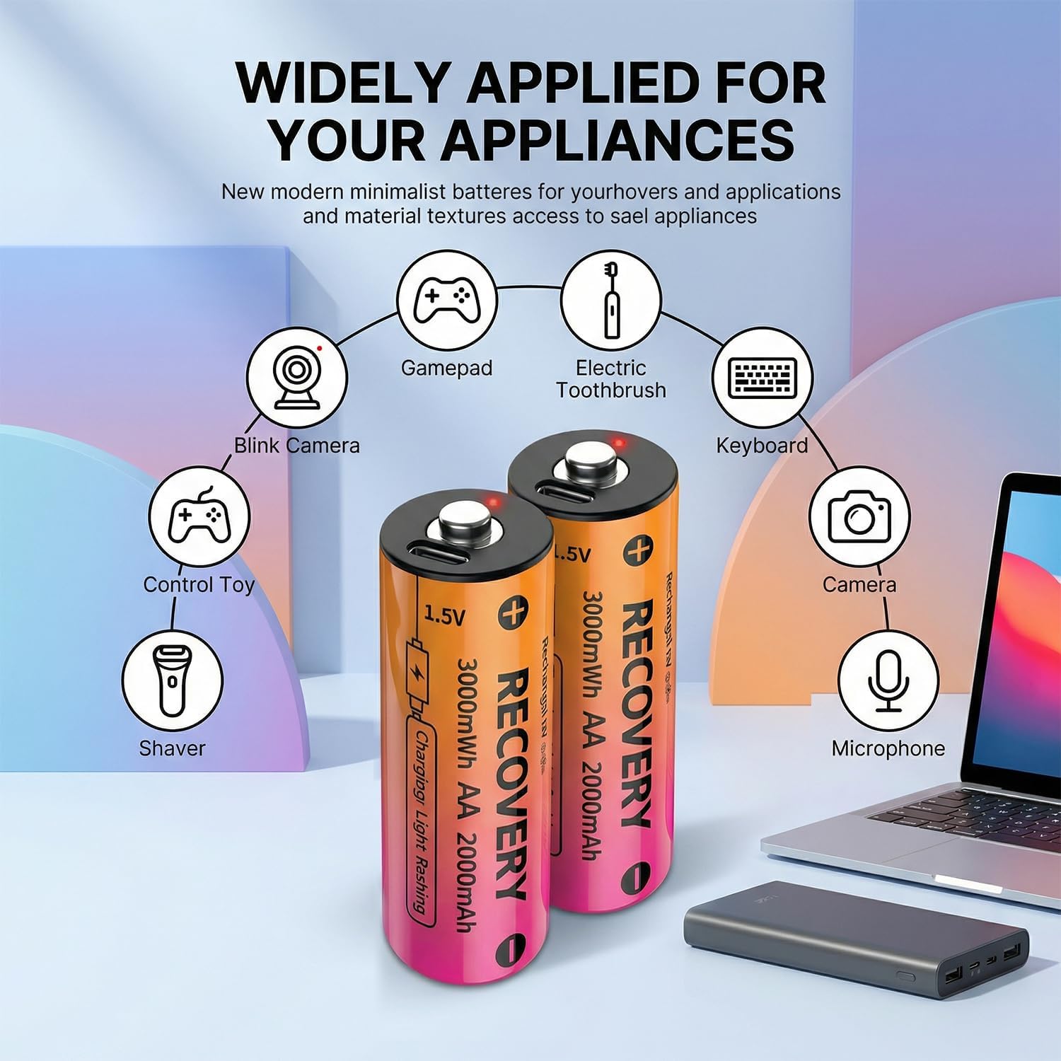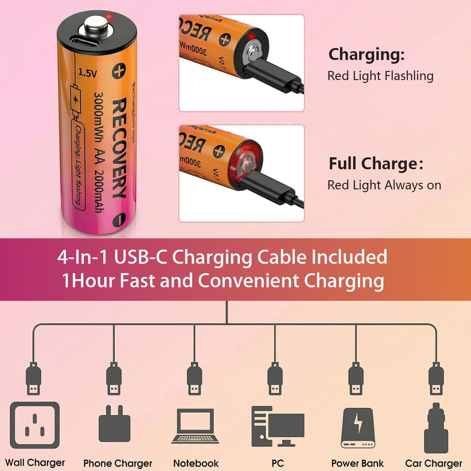 Power up your devices with FARSAIL's innovative rechargeable AA lithium batteries. This 8-pack of 1.5V Li-ion batteries delivers exceptional performance with a rapid 1-hour charge time and an impressive 3000mWh capacity. Built for longevity, these batteries can withstand 1200+ charge cycles, making them a cost-effective and reliable power solution. Each battery features integrated protection mechanisms against overcharging, overheating, and short circuits, ensuring safe operation across various devices. Perfect for high-drain electronics like smart home devices, Blink cameras, toys, and flashlights, these batteries maintain consistent power output throughout their charge cycle. The convenient charging system lets you replenish multiple batteries simultaneously, keeping your devices ready for action. Designed for versatility and reliability, these AA batteries combine advanced lithium-ion technology with practical usability for your everyday power needs.