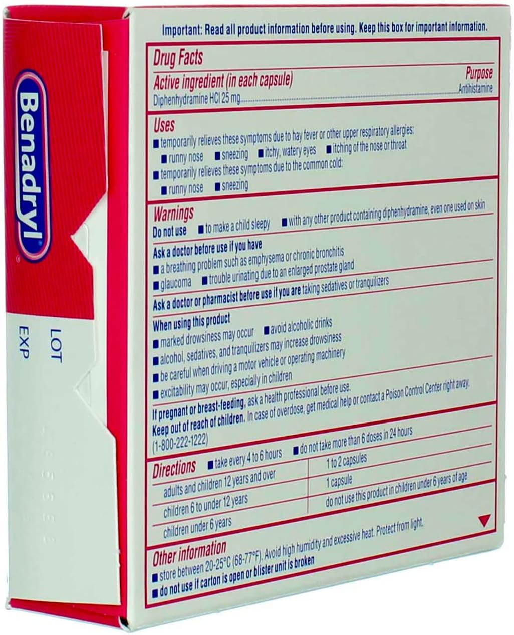Get effective relief from your allergies with BENADRYL Allergy Dye-Free LIQUI-GELS -- antihistamine relief that is dye-free has no colors added and works when you need it most. Contains 25 mg of the antihistamine diphenhydramine HCl.