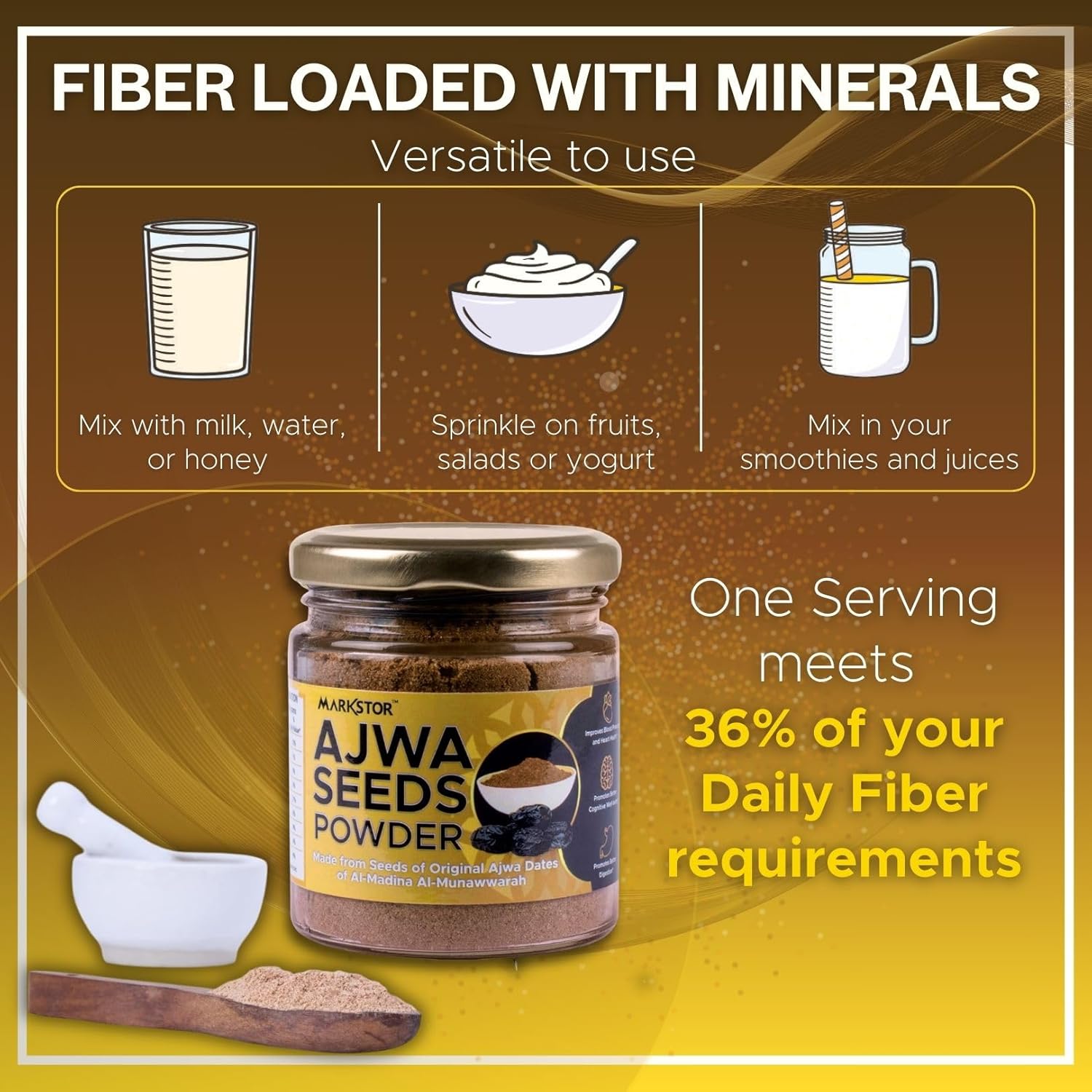 Markstor Ajwa Seeds Powder - 3.5 oz (100g) | Supports Heart Health & Cholesterol Levels | Enhances Metabolic & Cognitive Well-Being | Vegan, Gluten-Free, Non-GMO
