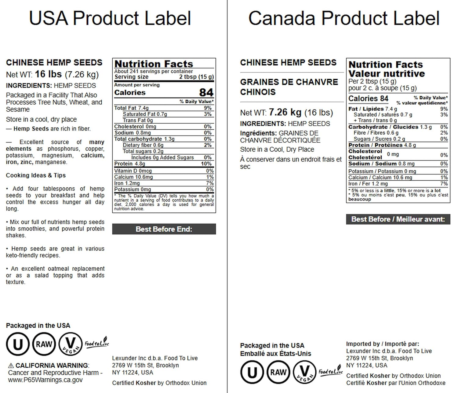 | Manufacturer | Food to Live |