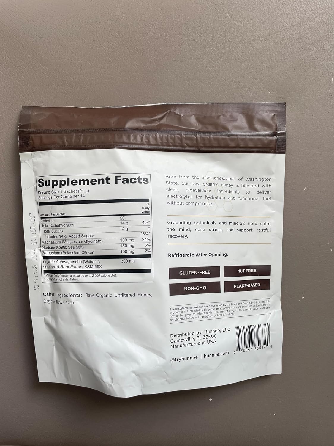 Hunnee Calm redefines what an energy gel can do. Built on raw organic unfiltered honey for clean carbohydrates, each gel adds KSM-66 ashwagandha. Magnesium glycinate, the most absorbable and gentle form of magnesium, helps support muscle relaxation without digestive upset. Organic raw cacao has a rich, satisfying flavor that makes fueling something to look forward to. Essential electrolytes from Celtic sea salt and potassium citrate support hydration and performance. Whether you're facing race day nerves, or simply want sustained energy, Calm provides the balanced fuel your body and mind need to perform at their best. Experience energy that centers you instead of overwhelming you.