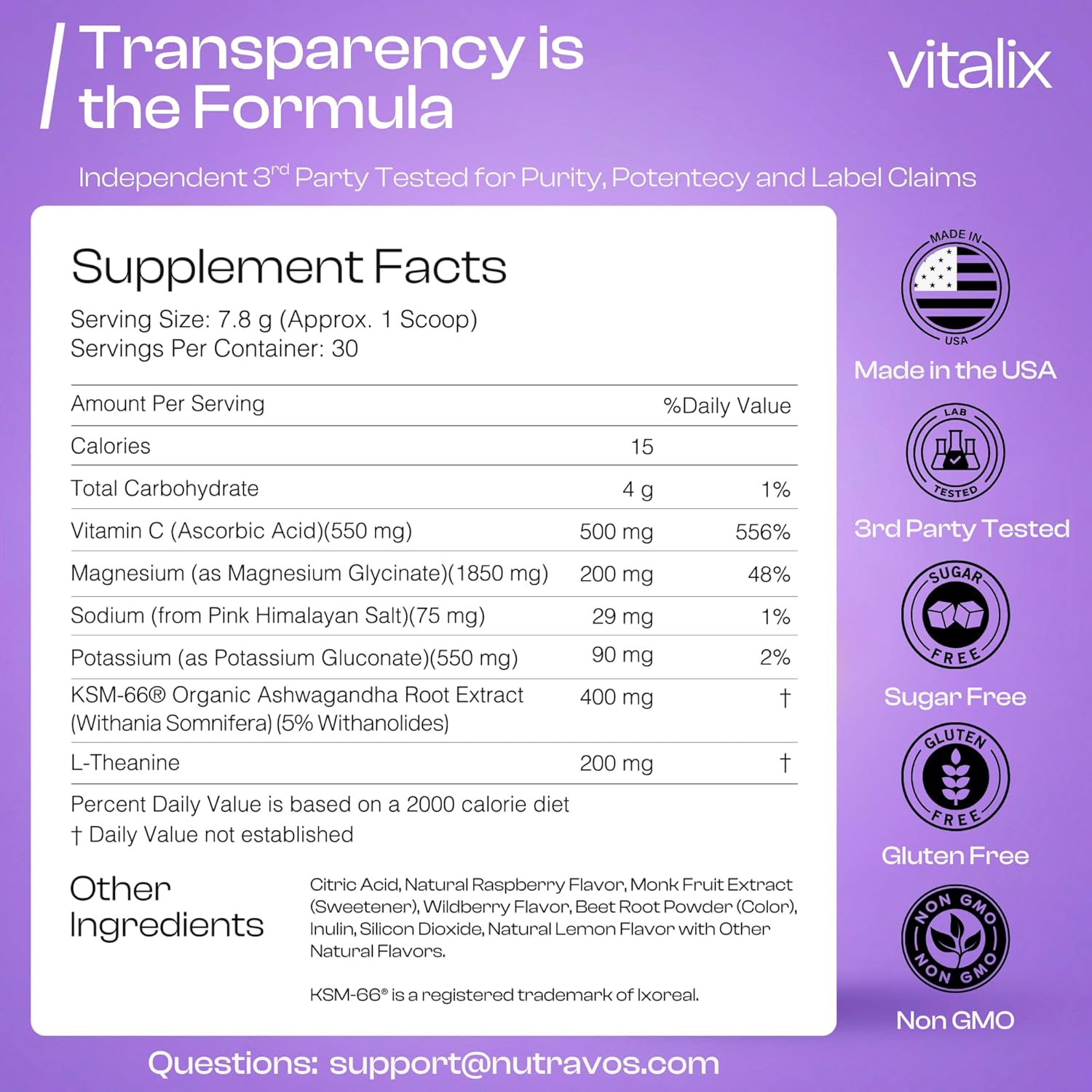 | Primary Supplement Type | Ashwagandha KSM 66 - 400mg, L-Theanine - 200mg, Magnesium Glycinate - 200mg, Potassium Gluconate - 90mg, Vitamin C - 500mg |