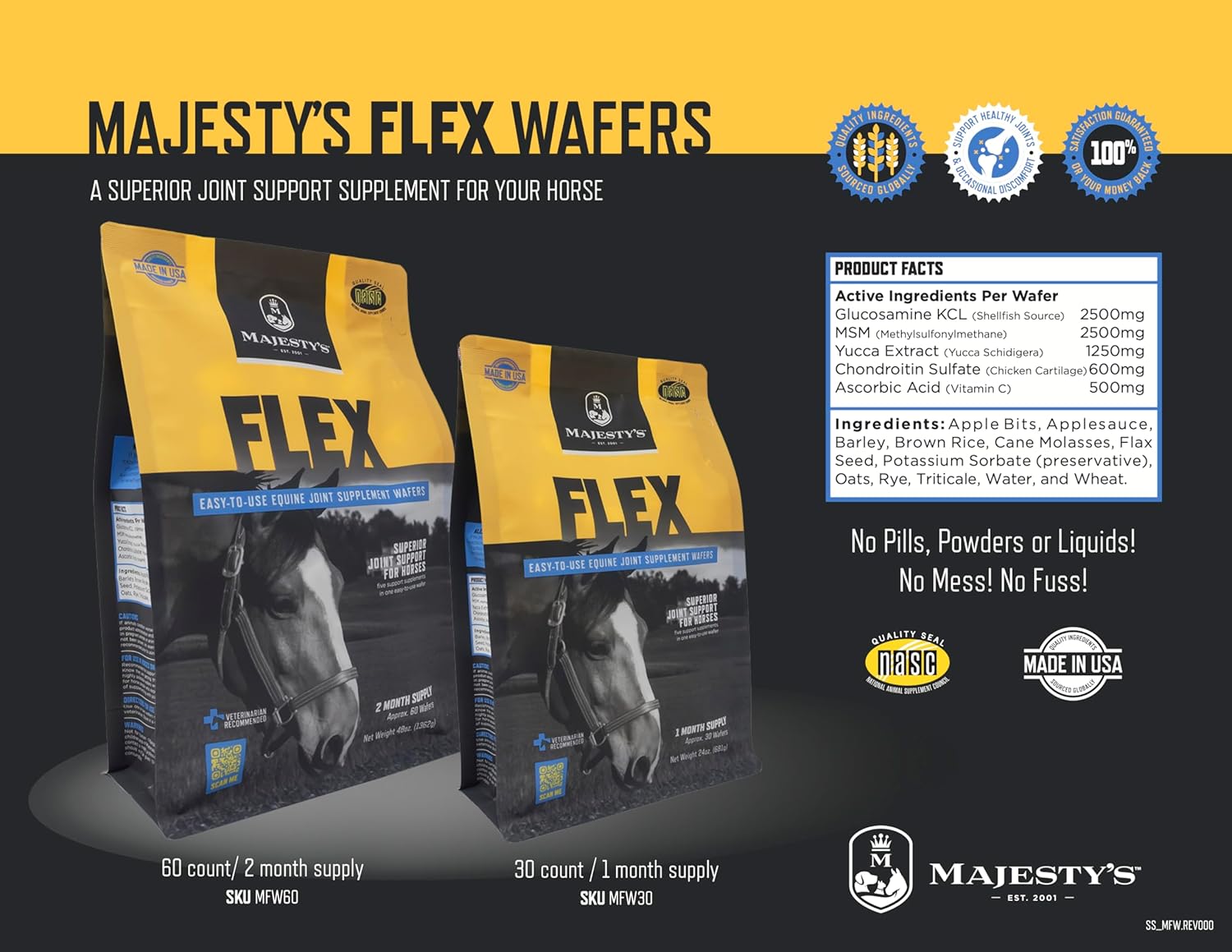 | Included Components | Majesty's Flex Wafers - Joint therapy for horses - 60 count bag |