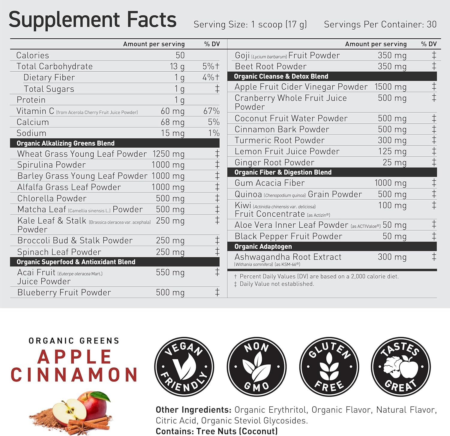 Kaged Organic Greens Powder | Apple Cinnamon | Outlive 100 Superfood & Greens Powder | Apple Cider Vinegar, Supergreens, Ashwagandha | Vitamins & Minerals | Supplements for Men & Women | 30 Servings
