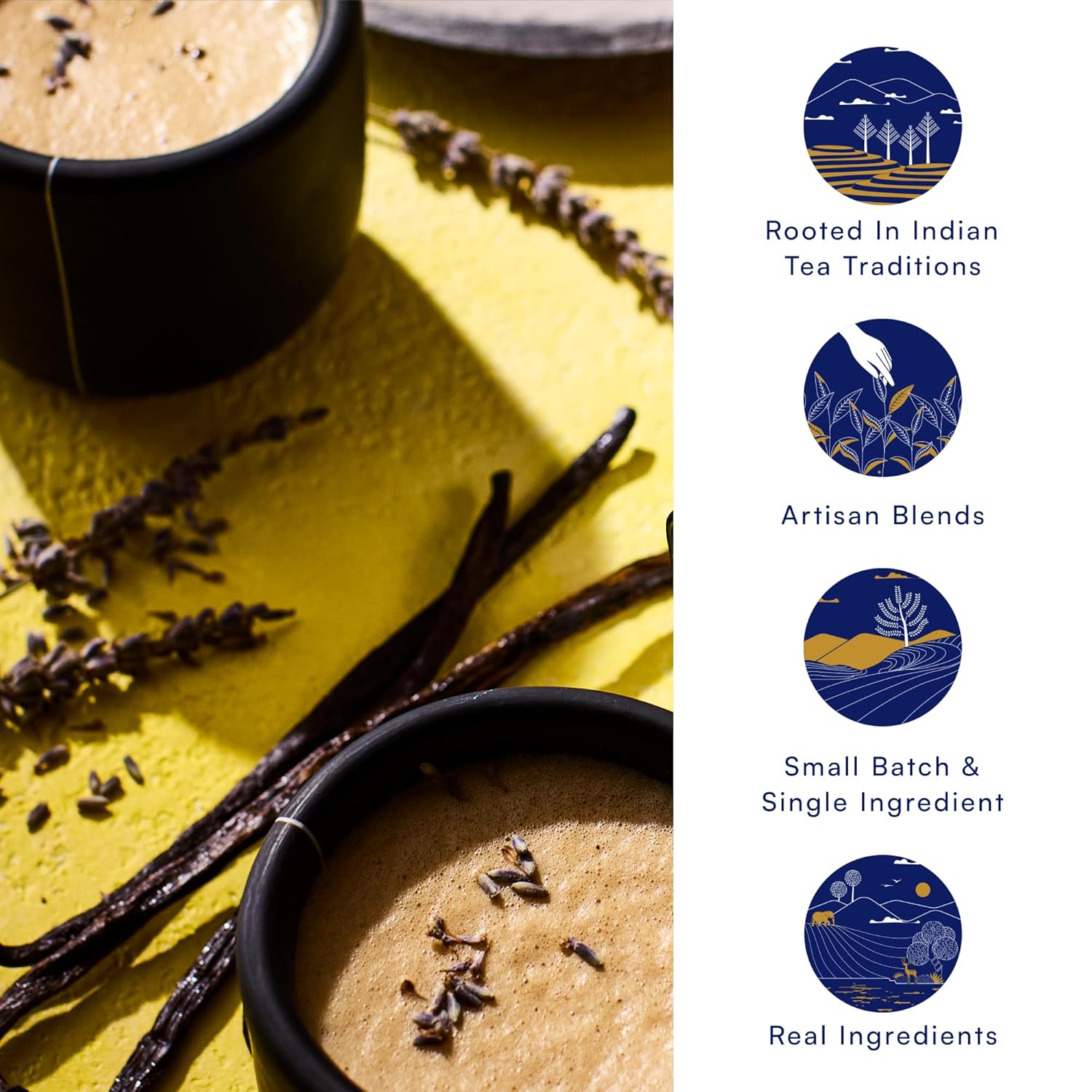 Our Vanilla Lavender Chai features real vanilla bean and aromatic lavender flowers, perfectly blended with single-origin Assam black tea and chai spices. This luxurious and sublime blend offers an exquisite experience, whether enjoyed hot or iced. It's fabulous!