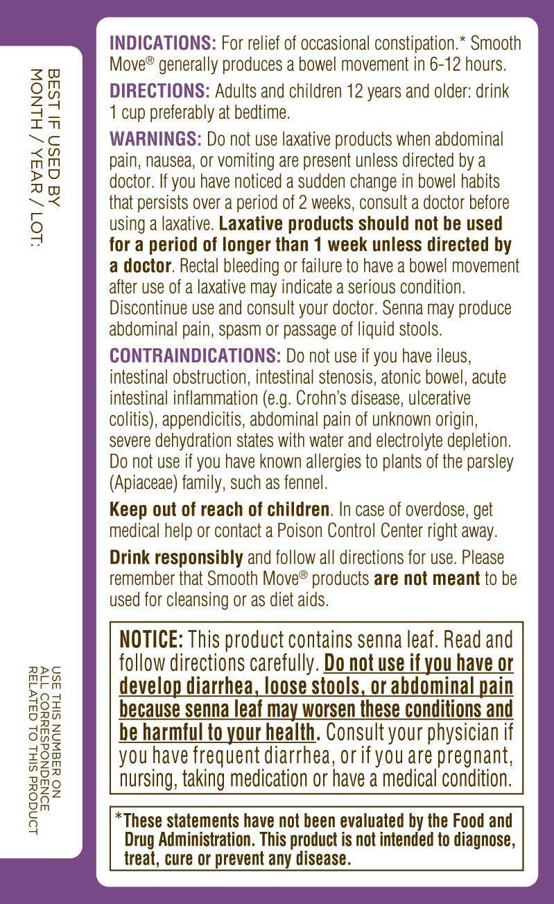 Traditional Medicinals Organic Smooth Move Herbal Stimulant Laxative Tea, 16-Count Wrapped Tea Bags (Pack of 6) ( Value Bulk Multi-pack)---6PACK