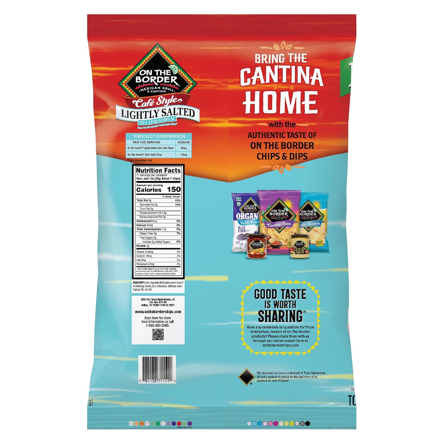 With the On The Border Original Medium Salsa, you can enjoy an authentic flavorful salsa loaded with tomatoes, jalapenos, and onions that brings a lively kick to any snack or meal! On The Border Original Medium Salsa is a perfect level of spice that goes great with On The Border Café Style Tortilla Chips or any snacking occasion. It’s gluten-free, vegetarian, and vegan and contains no artificial flavors or colors, so you can enjoy the great taste of On The Border Original Medium Salsa guilt-free! At On The Border, making delicious, authentic chips, salsas and quesos is our passion. We choose every ingredient purposefully and craft them slowly with care to make the kind of food that says: Take a break. Kick back. Pop open a bag and enjoy life's little moments. It's better On The Border!