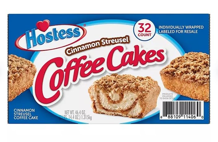 Say hello to the mouthwatering swirl of cinnamon flavor that makes Hostess Cinnamon Streusel Coffee Cake an irresistible treat. Brace yourself for a journey into the world of delightful cinnamon goodness. Wrapped with Freshness, Packed with Flavor Hostess knows what it takes to keep things fresh. Each cake in the 32-count pack comes individually wrapped, ensuring that every bite is as fresh and delectable as the first. Snack-Sized Happiness, Anytime Craving a little sweetness? These snack-sized cinnamon cakes have got your back. With Hostess, it's always the right time for a treat that satisfies. Perfect Pairing: Coffee and Cake Bliss Let's talk perfect pairings—these cakes and your favorite cup of coffee. It's a match made in flavor heaven. Sit back, sip and savor the moment. A Symphony of Warmth and Sweetness The heartwarming allure of cinnamon, swirled into moist, buttery cake—that's what Hostess Cinnamon Streusel Coffee Cake brings to the table. But wait, there's more! A finishing touch of brown sugar and cinnamon streusel topping takes it to the next level. Get ready to savor the irresistible magic of Hostess Cinnamon Streusel Coffee Cake. It's not just a cake; it's a moment of pure indulgence that's waiting for you.