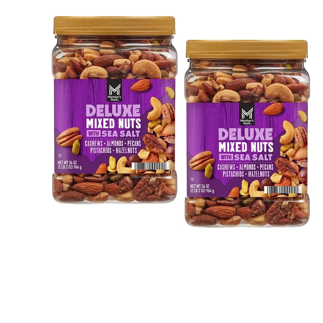 Indulge in premium snacking with these deluxe mixed nuts seasoned with sea salt. This generous 34 oz container offers a satisfying blend of premium nuts, perfect for sharing at gatherings or keeping on hand for everyday snacking. Each handful delivers a delightful combination of textures and flavors, from buttery to crunchy, all enhanced with just the right touch of sea salt. These mixed nuts are an excellent source of protein and healthy fats, making them an ideal choice for a nutritious snack that doesn't compromise on taste. The resealable container helps maintain freshness and makes it convenient to store or transport. Whether you're entertaining guests, need an energy boost during the workday, or simply enjoy quality nuts, this substantial portion of mixed nuts provides a versatile snacking solution.