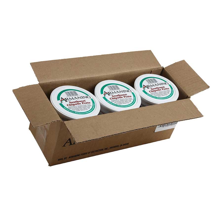 Armanino Southwest Chipotle Pesto, 30 Ounce -- 3 per case. Made with a bold blend of sweet, dried tomatoes, chipotle chiles, cilantro, onions, herbs and spices to create a deeply flavorful and vibrant pesto. Ingredients: Canola Oil,, Water, Onions, Dried Tomatoes, Jalapeno Peppers, Cilantro, Salt, Chipotle Chile Peppers, Sugar, Dehydrated Garlic, Spices, Xanthan Gum, Guar Gum, Maltodextrin, Propylene Glycol Alginate. Specialty