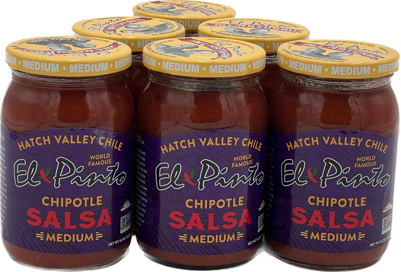 The El Pinto family restaurant has been in operation since 1962, making delectable salsa for years. In 1994, twin brothers, Jim and John Thomas, bought the restaurant from their parents. Less than a decade later, the brothers responded to the requests of thousands of customers by creating El Pinto’s salsa division which allowed for their salsa to be sold separately and outside the restaurant. Jim and John soon became known as the “Salsa Twins.” Their first production site consisted of a mere 35-gallon kettle and a pump in their restaurant’s kitchen. They now have the capacity and space to make 3 to 4 million jars a year! What makes our salsa so special is that most of our chiles come exclusively from Hatch, New Mexico because of their world-renowned chile peppers. Bring the heat to the kitchen with El Pinto’s Hot Salsa using Hatch chile peppers! This savory salsa makes for an enticing snack with all-natural, non-GMO, gluten-free ingredients and an original vegan recipe. Savor the flavor or medium roasted green chilies as a topping or ingredient in your next appetizer or dish. Great on any meat, eggs, fish or chips for authentic new Mexican flavor. Enjoy the tasty fusion of peeled tomatoes, roasted Hatch green chiles, jalapenos, sea salt, and, of course, garlic. We’ve stored our salsa in solid, thick mason jars to better preserve its flavor. Once you open your salsa, be sure to refrigerate it to help extend its shelf life. You’ll get 6 jars of El Pinto’s Hot Salsa. Use them to fill up all your salsa bowls. Who doesn’t love salsa? Order El Pinto’s Hot Salsa today! No artificial colors, preservatives or flavors.