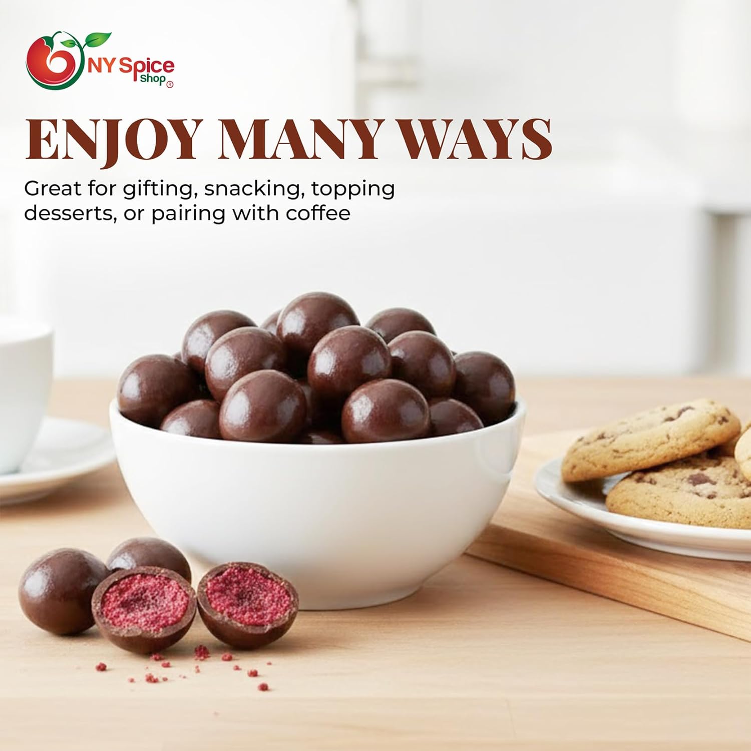 NY SPICE SHOP DARK CHOCOLATE RAISINS Enjoy the perfect combination of crunchy raisins coated in smooth dark chocolate with NY Spice Shop’s Dark Chocolate Raisins. These bite-sized treats fit beautifully into candy bowls and seasonal snack spreads, making them a wonderful addition to holiday celebrations, family gatherings, and winter parties. Share them with friends, family, and coworkers to bring a sweet and festive touch to parties, office events, and seasonal occasions. RAISIN TREATS FOR SEASONAL SHARING NY Spice Shop Dark Chocolate Raisins are conveniently sized for easy snacking, sharing, or adding to candy displays. Each piece offers a satisfying combination of rich dark chocolate and crunchy raisins, creating a delightful treat for gift jars and snack assortments. They are ideal for office treats or winter celebrations, providing a simple, fun, and festive way to enjoy chocolate snacks. PERFECT PARTY AND EVENT CANDY MIX NY Spice Shop Dark Chocolate Raisins are a versatile option for a wide range of seasonal gatherings, including winter parties, weddings, and family events. They add a sweet, chocolatey touch to candy buffets and gift baskets. With their smooth dark chocolate coating and crunchy raisin center, they make an excellent candy mix for sharing with guests during celebrations and parties. SEASONAL SNACKS FOR SHARING AND GIFTING NY Spice Shop Dark Chocolate Raisins are an excellent choice for sharing with friends, family, and coworkers throughout the season. Use them as festive chocolate snacks, dessert accents, or sweet treats at events, gatherings, or winter celebrations. Their combination of crunchy raisins and smooth dark chocolate makes them a versatile and appealing addition to candy bowls, gift jars, and snack assortments.