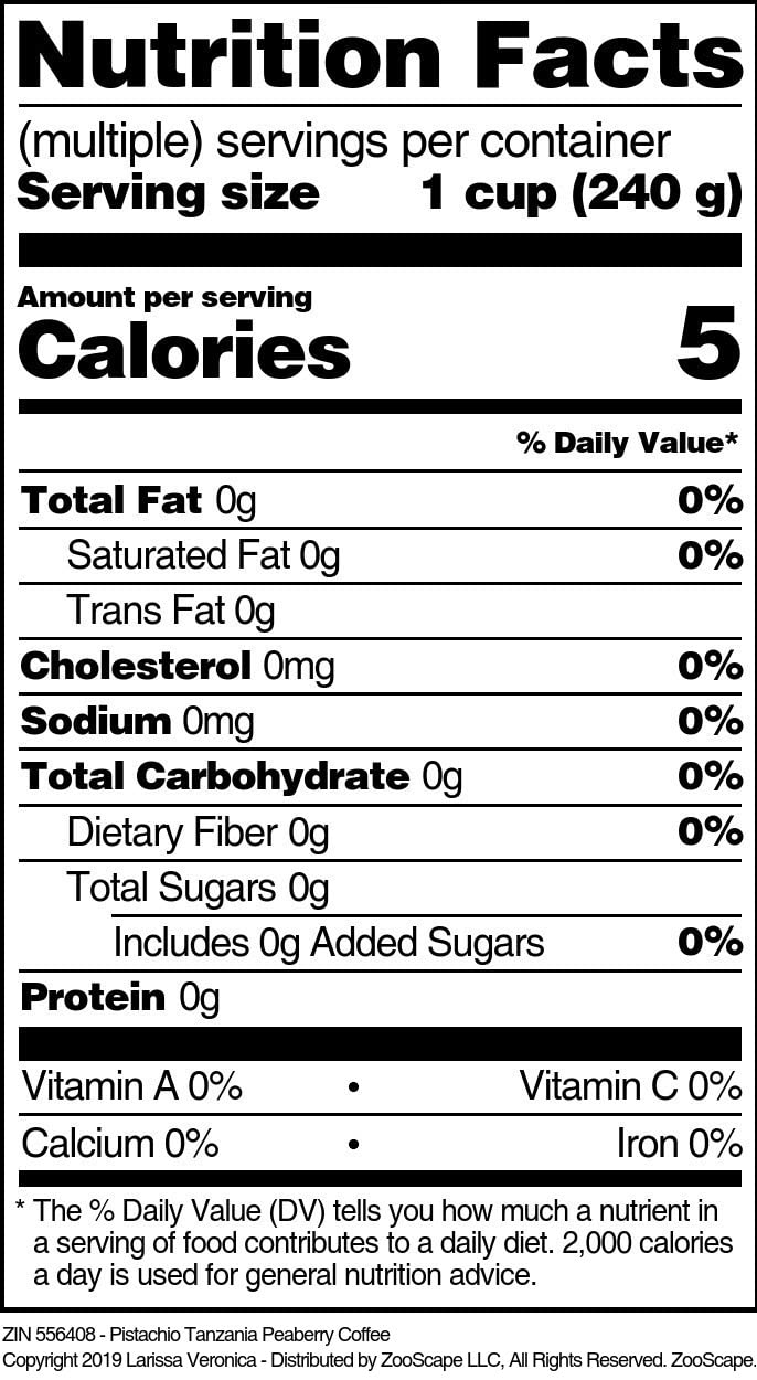 Our Pistachio Tanzania Peaberry coffee is a pleasurable, naturally flavored, medium-bodied Tanzania Peaberry coffee with Pistachio Pieces, Macadamia Nuts and Rose Petals. You will enjoy the Pistachio flavor and the bright Tanzania Peaberry coffee taste! - Ingredients: Tanzania Peaberry coffee (whole coffee beans), Pistachio Pieces, Macadamia Nuts, Rose Petals and Natural Pistachio Flavor. - Grind the desired amount of this whole coffee bean blend prior to brewing to maximize freshness and flavor! Put ground coffee into your coffee maker filter and brew. Sweeten and garnish to taste. For iced coffee, add ice and top up with cold water. - Larissa Veronica is an exclusive line of natural premium-quality products that use only the purest and finest ingredients from around the world. Larissa Veronica is hallmarked by the highest possible standards of purity, stability and freshness. All of our products are prepared with the highest elements of quality control, from raw materials through the entire manufacturing process, up to and including the moment that the bottles or bags are sealed for freshness and shipped out to you. Our highest possible standards are certified by independent laboratories and backed by our personal guarantee. - Larissa Veronica strives to make all products affordable and we are constantly researching the market to maintain our affordability and to look for new ways to serve you and the ones you love. Larissa Veronica has become a trusted household name for many families. - Larissa Veronica is packed in tamper-proof, food-grade, recyclable containers. - ZooScape is proud to be the exclusive distributor of all Larissa Veronica spices, snacks, foods and ingredients in the United States, Canada and around the world. - Store in an airtight dark container in