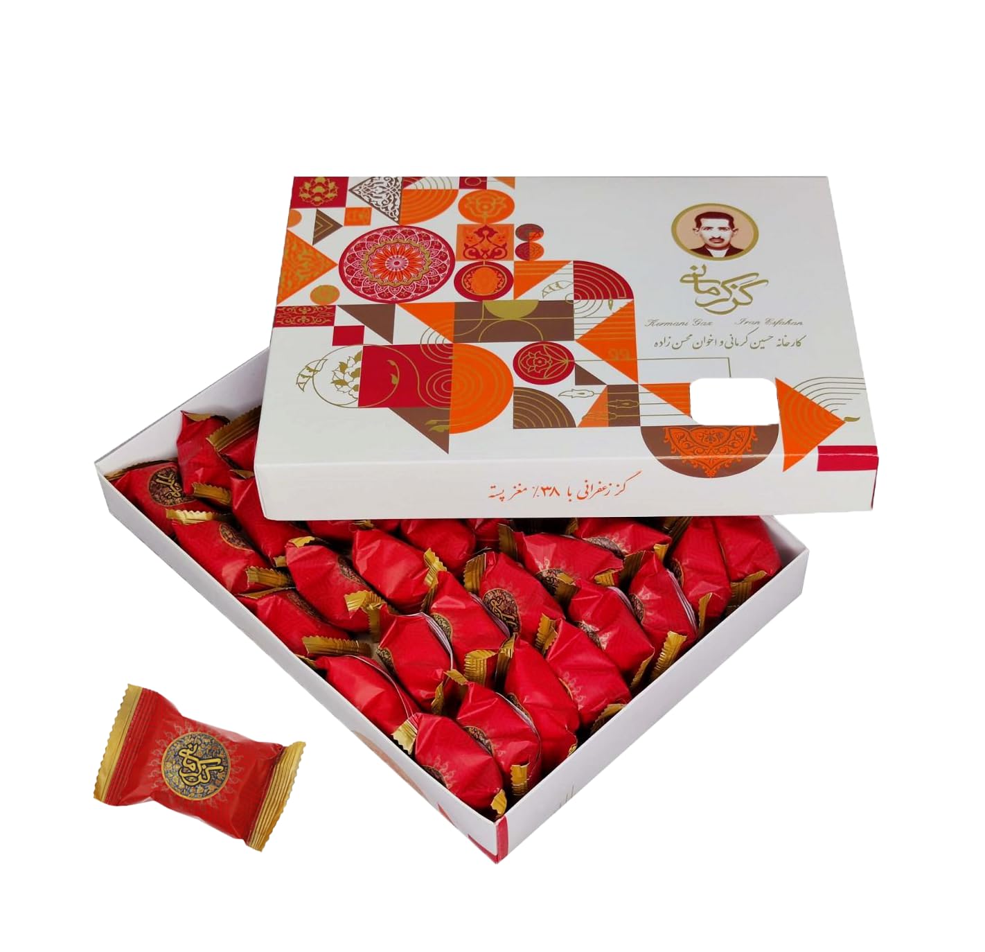 Saffron Pistachio Gaz is an authentic nougat. This particular box boasts 38% fresh pistachios by weight and a generous amount of saffron, imparting a rich, flavorful, and uniquely aromatic taste. A truly authentic Gaz is still made with Angabin. Its supreme quality, softness, freshness, and exceptional flavor make it a truly distinctive treat.