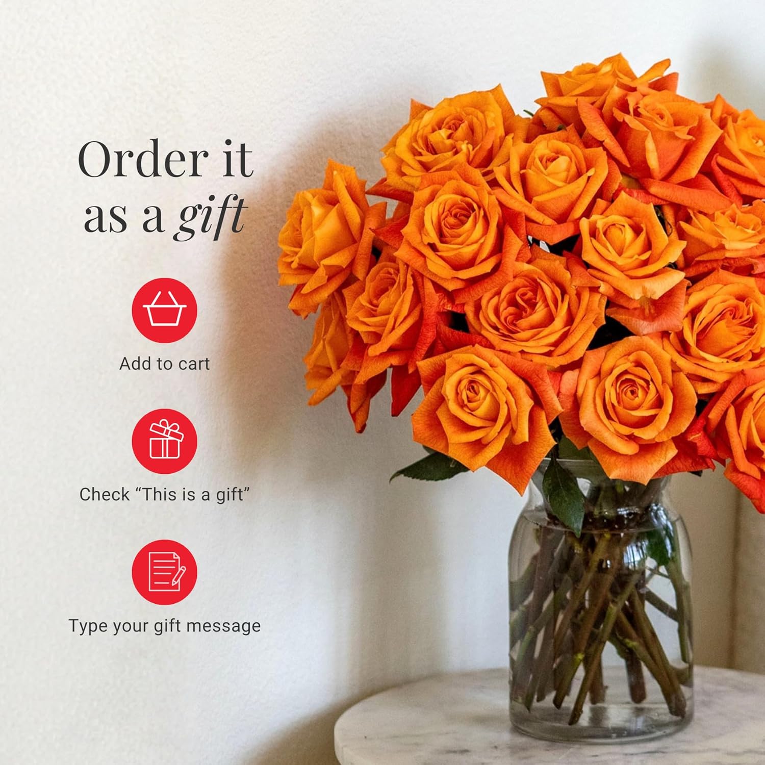 | Special Features | 1.Bicolor Orange Roses: Two dozen striking bicolor roses featuring warm orange tones blended with complementary hues for a distinctive look., 2.Distinctive Color Palette: Earthy hues blend rustic charm with modern elegance, creating a visually striking bouquet, 3.Farm Fresh Quality: Hand-picked at peak bloom and shipped directly from the farm for lasting freshness., 4.Versatile Decorative Appeal: Ideal as a centerpiece, for special occasions, or to add warmth and character to home décor. |