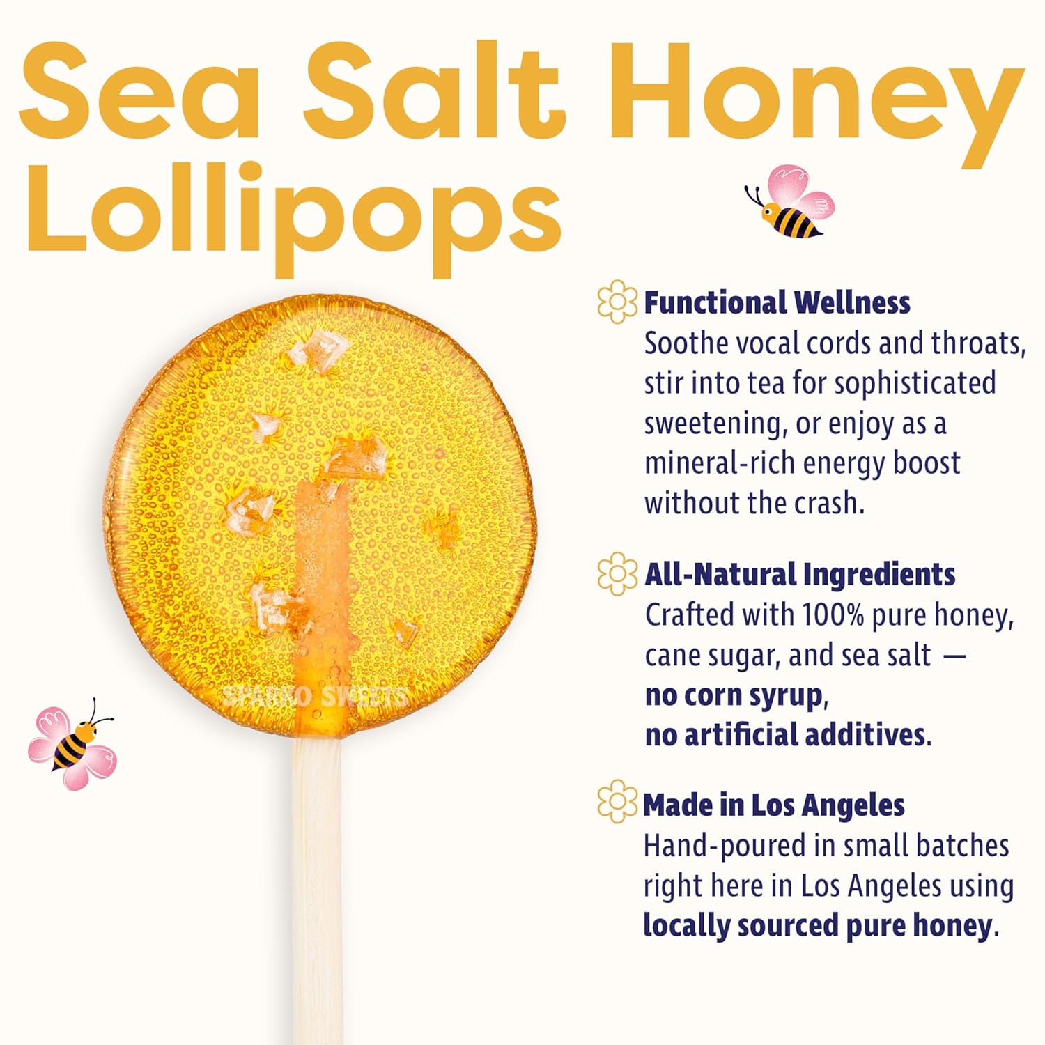 Sparko Sweets Natural Honey Mini Round Lollipops are handcrafted from organic honey sourced directly from local bee farms, ensuring purity and quality in every piece. Each lollipop weighs 12 grams and is the perfect blend of sweet honey flavor with natural health benefits, making them a versatile treat. These lollipops are great for soothing sore throats naturally, offering relief during cold and flu season without any artificial ingredients. Their mild, natural sweetness also makes them an ideal way to sweeten hot beverages, such as tea or coffee, without the need for refined sugar. Whether you're a tea enthusiast or looking for a healthier sweetener, these honey pops are a perfect choice. Made fresh to order, each lollipop contains no corn syrup, artificial colors, flavors, or preservatives, ensuring you receive only the best ingredients. Packaged with a sustainable 5-inch lollipop stick and a 1.4-inch round honey portion, these lollipops are also perfect for party favors, wedding giveaways, or holiday gift baskets. Proudly crafted in the USA with locally sourced ingredients, each pack includes 16 mini round lollipops, making them a thoughtful gift or a daily treat to enjoy anytime. Add them to corporate gifts, or keep them on hand for a quick, natural snack that everyone will love.
