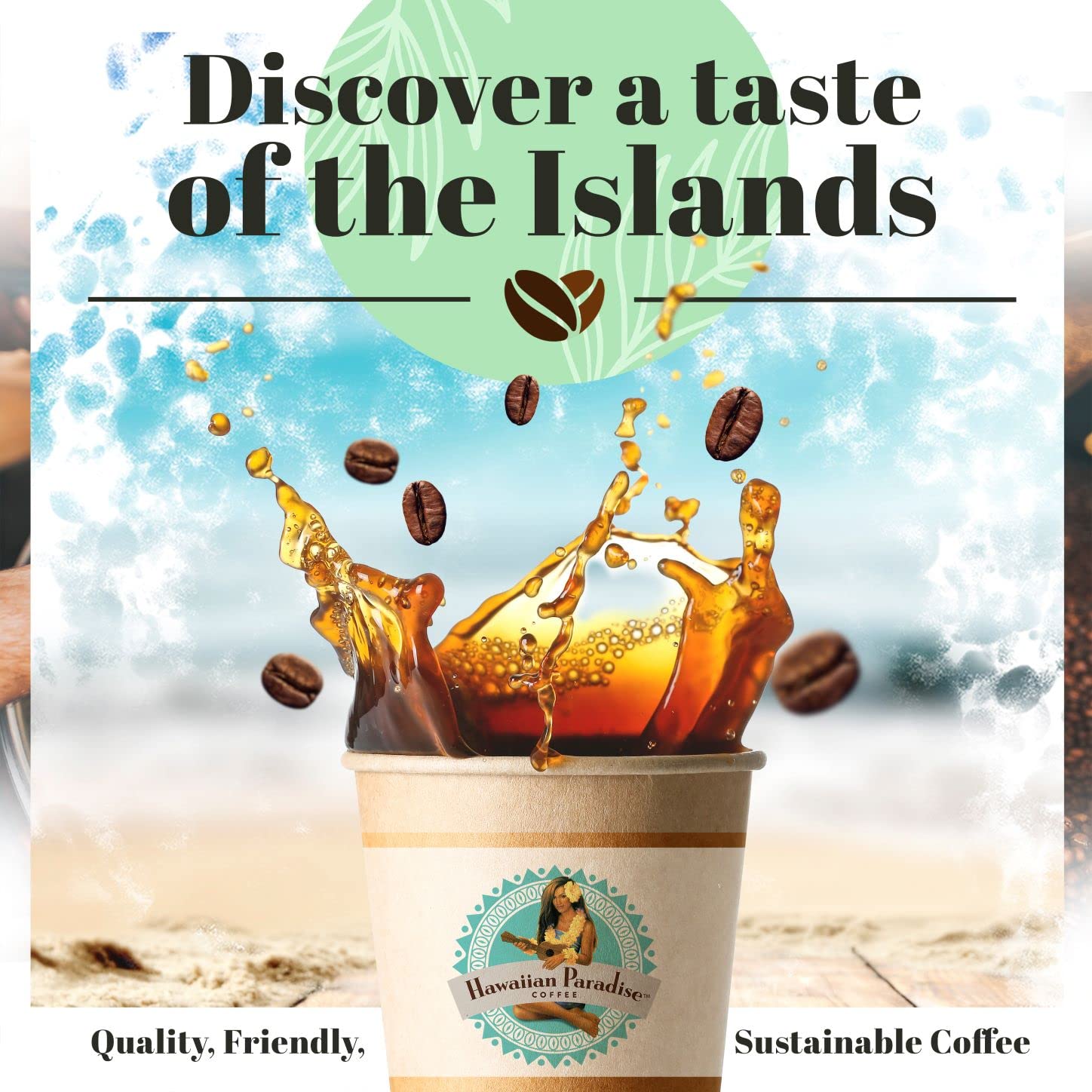 Your first cup of Hawaiian Paradise Coffee will tantalize your senses and bring you a sense of the “Aloha Spirit” that will transform your day into a tropical paradise. Hawaiian Paradise Coffee is 100% premium organic Arabica coffee. We source fresh organic produce from farmers across the Pacific coast. Our gourmet ground coffee can be enjoyed at home or at the office any time of the day. Hawaiian Paradise coffee selects and roasts only the finest coffee grown in Hawai’i and around the world. We are committed to a sustainable business model. Our roasting facilities in Hawai’i operate on 100% renewable solar power, hybrid, or clean diesel. Our packaging is recyclable but most importantly our farms in Hawai’i produce the finest coffee grown in the United States. Choose from an assortment of pure estate coffee, signature blends, and flavored coffee, and discover a taste of the islands. We are also proud to offer our ground coffee, which includes Kona, as well as select coffee & teas in single serve cups.