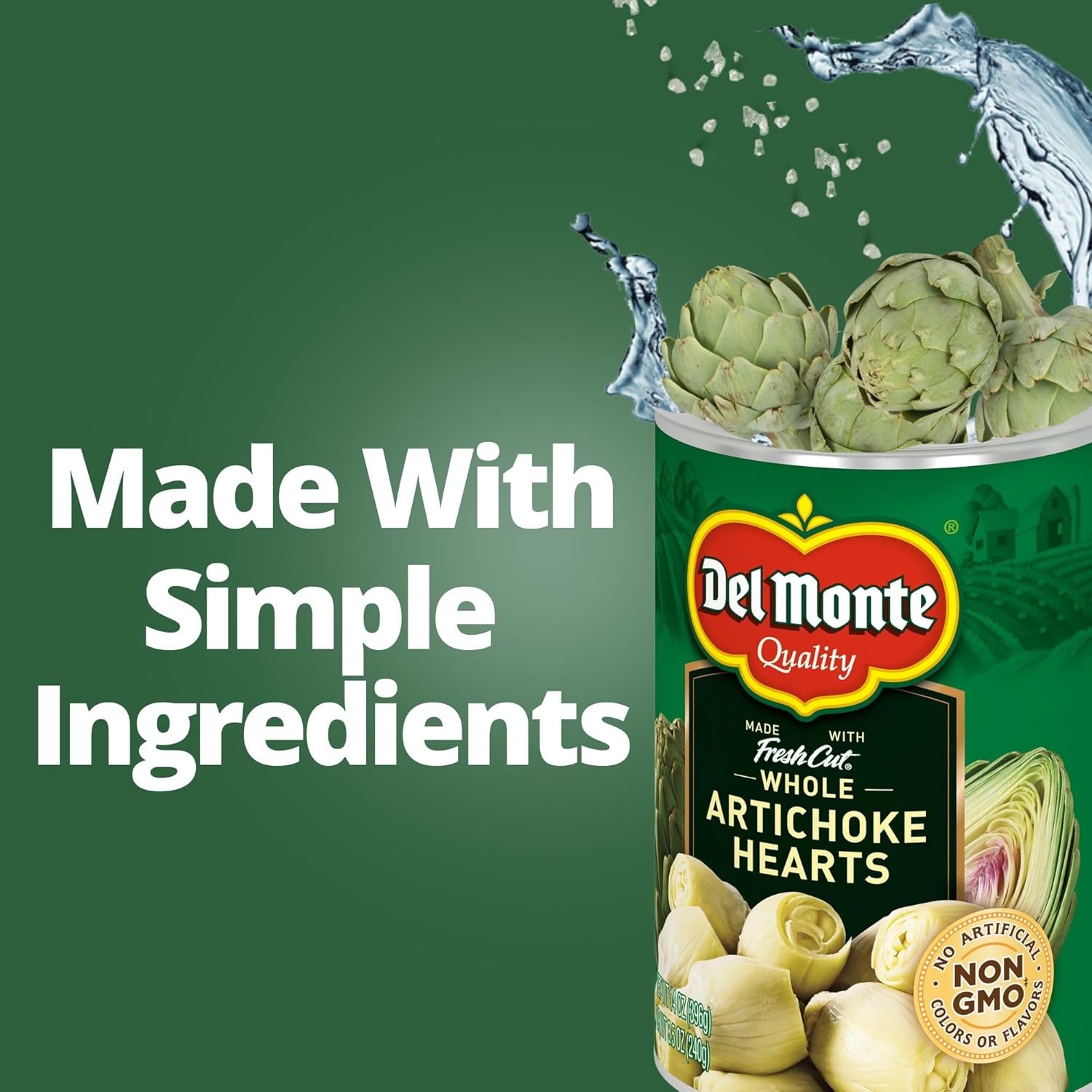 DEL MONTE FRESH CUT Whole Artichoke Hearts offer a quick, delicious vegetable side dish or snack. Picked at the peak of ripeness with the artichokes from fresh pack, these canned vegetables deliver unsurpassed flavor in every bite. These Non-GMO* DEL MONTE vegetables contain no artificial flavors or artificial colors. Serve in a salad or mix with pasta, grilled chicken, seafood or a vegetable medley. Enjoy the fresh taste of artichokes anytime when you keep canned artichokes on hand. Bring the wholesome goodness of the earth to your table with DEL MONTE Whole Artichoke Hearts. *Ingredients of the types used in this product are not genetically modified.