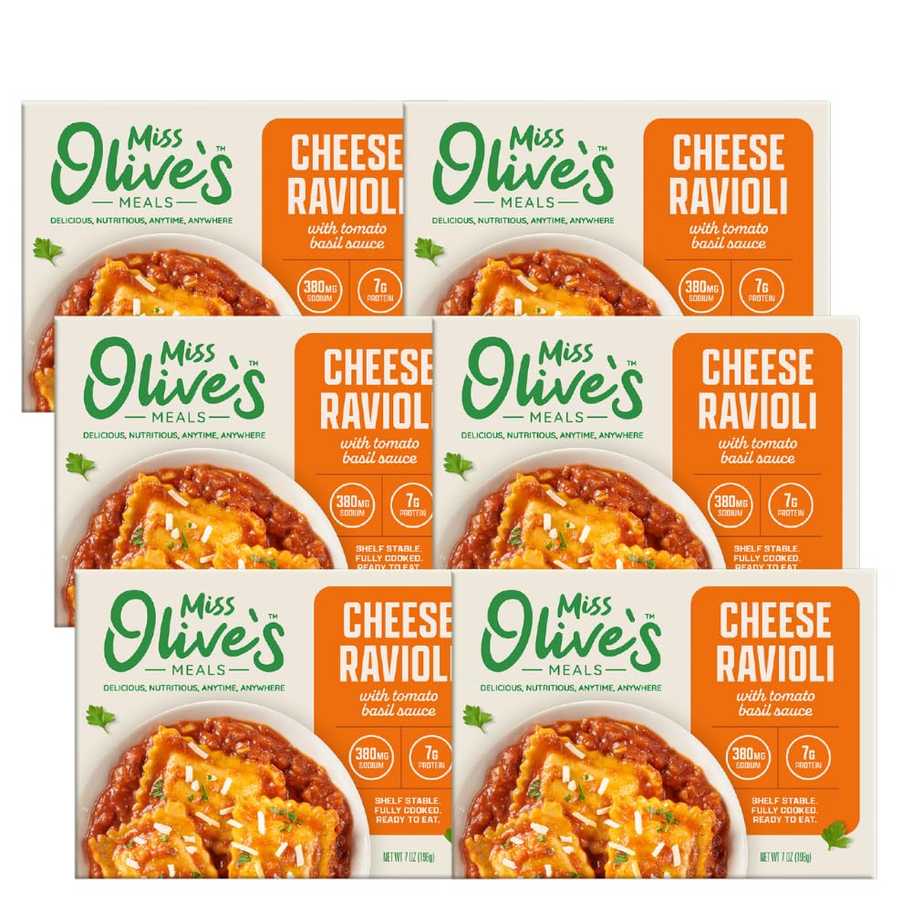 Enjoy a comforting, classic pasta dish anytime with Miss Olive’s Cheese Ravioli Ready Meals. Each meal features tender ravioli stuffed with creamy cheese and topped with a rich tomato sauce for a satisfying, homestyle flavor. This 12-pack bundle offers convenience and value, with each meal fully cooked and shelf-stable, so you can store them in your pantry and enjoy whenever you need a quick, easy meal. Designed with lower sodium, this is a great option for those looking to make more balanced food choices without giving up taste. Whether you're at home, at work, or on the go, these microwavable meals are ready in just minutes—no prep required. Perfect for busy schedules, meal prepping, or emergency food storage. Heat. Eat. Enjoy.