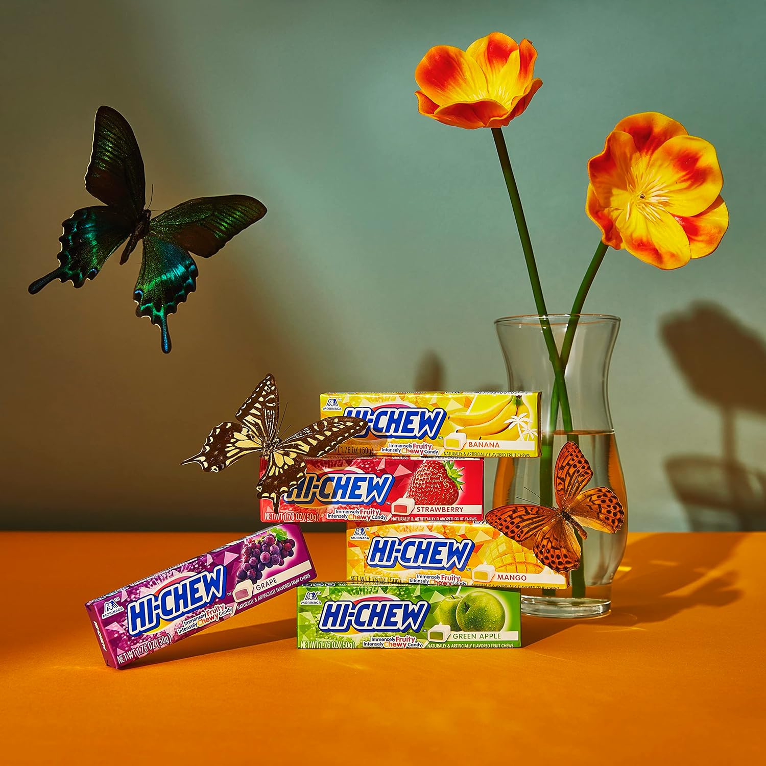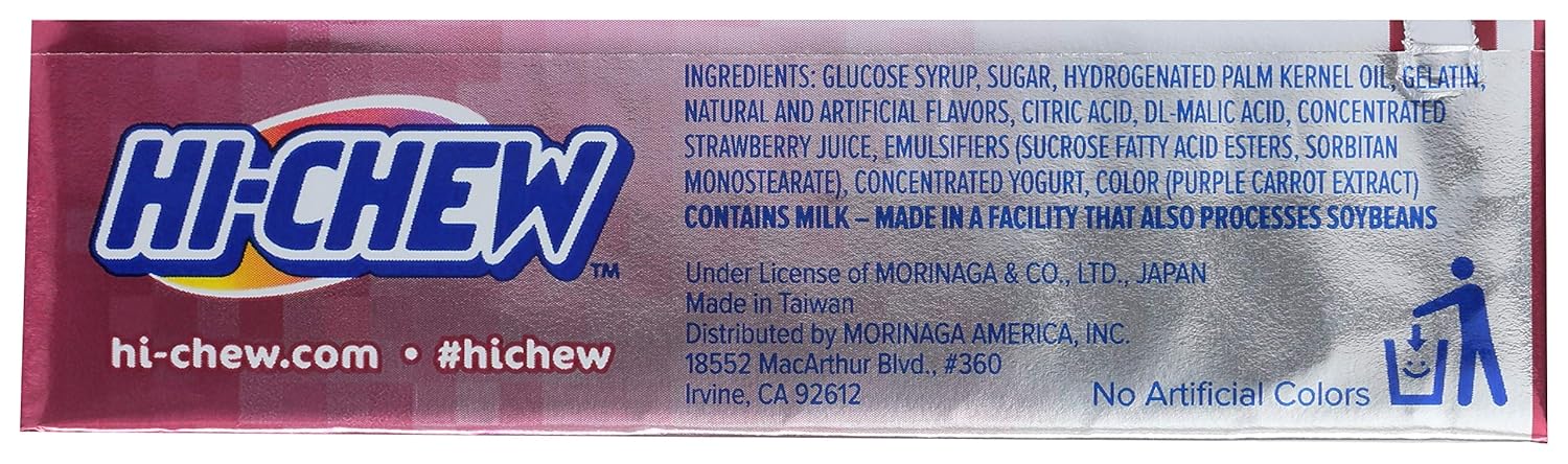 HI-CHEW is a soft, chewy candy that contains real fruit juices and purees, no artificial colors, gluten free, cholesterol-free and 0g Trans Fat. HI-CHEW is the #1 soft candy in Japan and is the new sensation in North America. Enjoy HI-CHEW, a sensationally chewy candy with real fruit juice! Includes 10 sticks of HI-CHEW. In the 1930's, Taichiro Morinaga was trying to create a new kind of chewing gum for Japan. Back then, it was very impolite to take food out of your mouth. So Mr. Morinaga tried to create a more culturally accepted version of chewing gum- one that could be swallowed. Fortunately, Mr. Morinaga already made outstanding caramel with a uniquely chewy, creamy texture. It was unlike anything else in Japan. In 1931, he added natural strawberry flavor to his caramel recipe and Chewlets was born.. Then in 1975, after decades of hard work perfecting his recipe, Mr. Morinaga re-introduced Chewlets to Japan as the wonderful candy we now know as HI-CHEW. Since then, HI-CHEW has been produced in over 113 flavors and become the most popular chewy candy in Japan. Today. it's rapidly becoming an American favorite. We hope you enjoy the real fruit flavor and chewy texture that makes HI-CHEW like nothing you have ever tasted before.