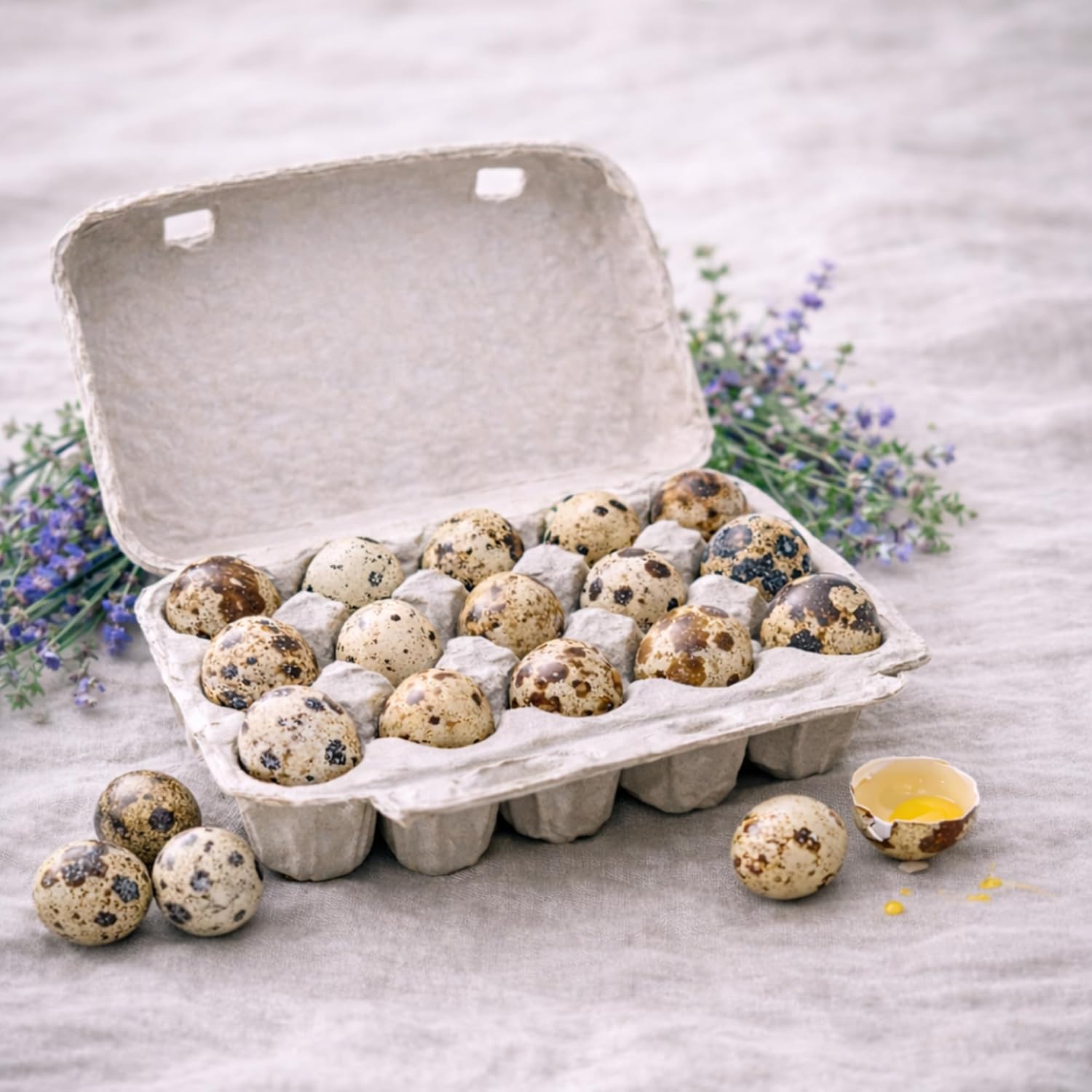 Discover the exquisite taste and superior quality of our Non-GMO and Hormone-Free Coturnix Quail Eggs! At Daily Bread Homestead, we are committed to providing you with the finest quail eggs for a wholesome and nutritious culinary experience. To ensure the highest quality eggs, our quail are raised on a diet free from genetically modified organisms (GMOs) and hormones. This commitment to natural feeding practices results in eggs that are not only delicious but also free from unwanted additives, ensuring you're making a healthy choice for you and your family. We take great care in selecting and providing the best quality feed for our quail, ensuring they receive the essential nutrients needed for their health and to produce top-quality eggs. By choosing Non-GMO and Hormone-Free Coturnix Quail Eggs from Daily Bread Homestead, you're not only indulging in a gourmet culinary experience but also making a health-conscious choice that aligns with natural and sustainable feeding practices. Enjoy the benefits of these nutritious and delicious eggs in your everyday meals! Coturnix quail eggs are a nutritional powerhouse. They contain higher levels of protein, vitamin B12, and essential minerals like iron and phosphorus compared to chicken eggs and are 3 times more nutritious than chicken eggs too. Their smaller size packs a concentrated nutritional punch. These eggs are a good source of antioxidants like selenium and vitamin A, which can contribute to a stronger immune system. Quail eggs can be an excellent addition to any diet due to their nutrient-rich profile and low carbohydrate content. Quail eggs are very low in carbohydrates, include healthy fats like monounsaturated and polyunsaturated fats, and high in protein. They are a great choice for both keto and low calorie diets. Order today and elevate your culinary experience with these nutritious and delicious gems from nature. They don't just look cute but they also taste great!