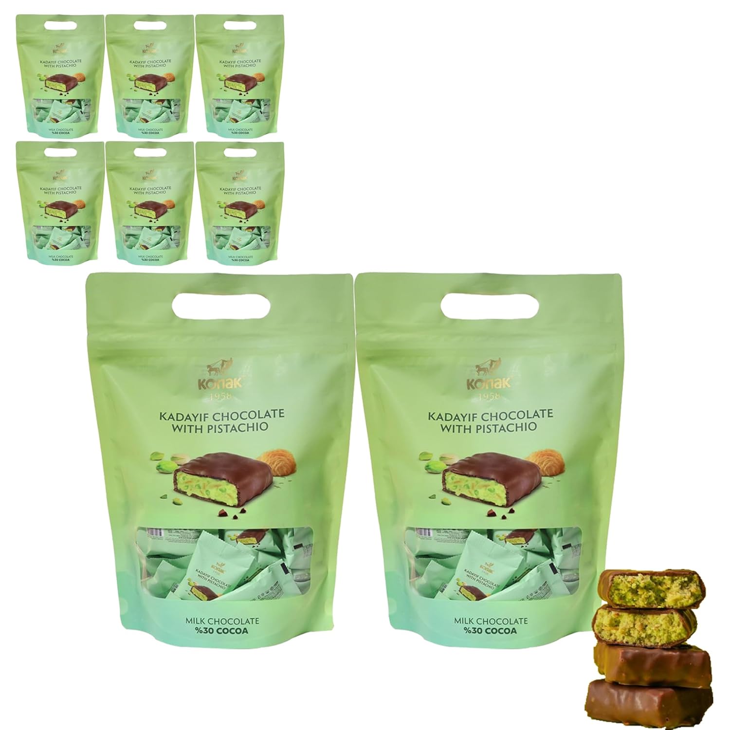 Indulge in the rich, luxurious taste of Dubai with our Mini Dubai Chocolate Kunafa Pistachio Bar. Weighing 1.1 pounds (500g), this delectable treat is crafted with premium ingredients, combining the creamy richness of chocolate with the crunchy texture of shredded phyllo dough and the nutty flavor of pistachios. Perfect for gifting or enjoying yourself, each bar is made fresh daily to ensure the highest quality and freshness. Whether you're looking for a unique gift or a special treat to satisfy your sweet tooth, our Pistachio Chocolate Bars are the perfect choice. The combination of flavors and textures will transport you to the heart of Dubai, making every bite a memorable experience.
