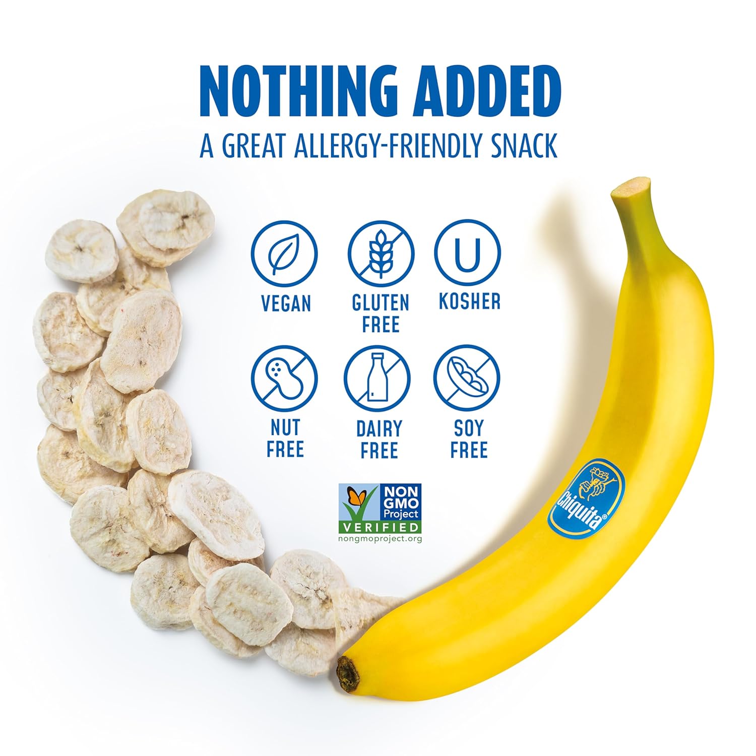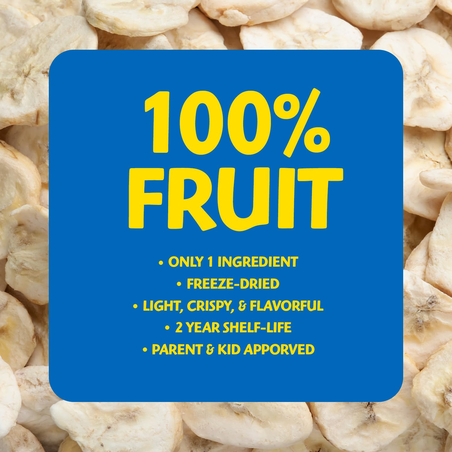 Our Freeze-Dried Bananas are loaded with Magnesium and Potassium, sourced from the earth’s prime growing regions. They’re sent directly through our state-of-the-art freeze-dried process, gently removing any water and keeping nutrients and texture in-tact. Largely allergy-sensitive, our fruit is peanut-free, tree-nut free, soy-free, dairy-free and gluten-free. An entire bag contains just 40 calories and is equivalent to one bag of fresh fruit! Our Freeze-Dried Bananas are bursting with flavor and make healthy snacking not only easy, but more importantly, tasty. They go great in recipes, lunchboxes, or simply as a snack on-the-go!