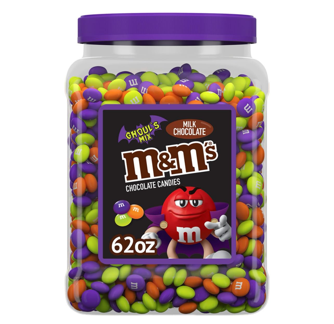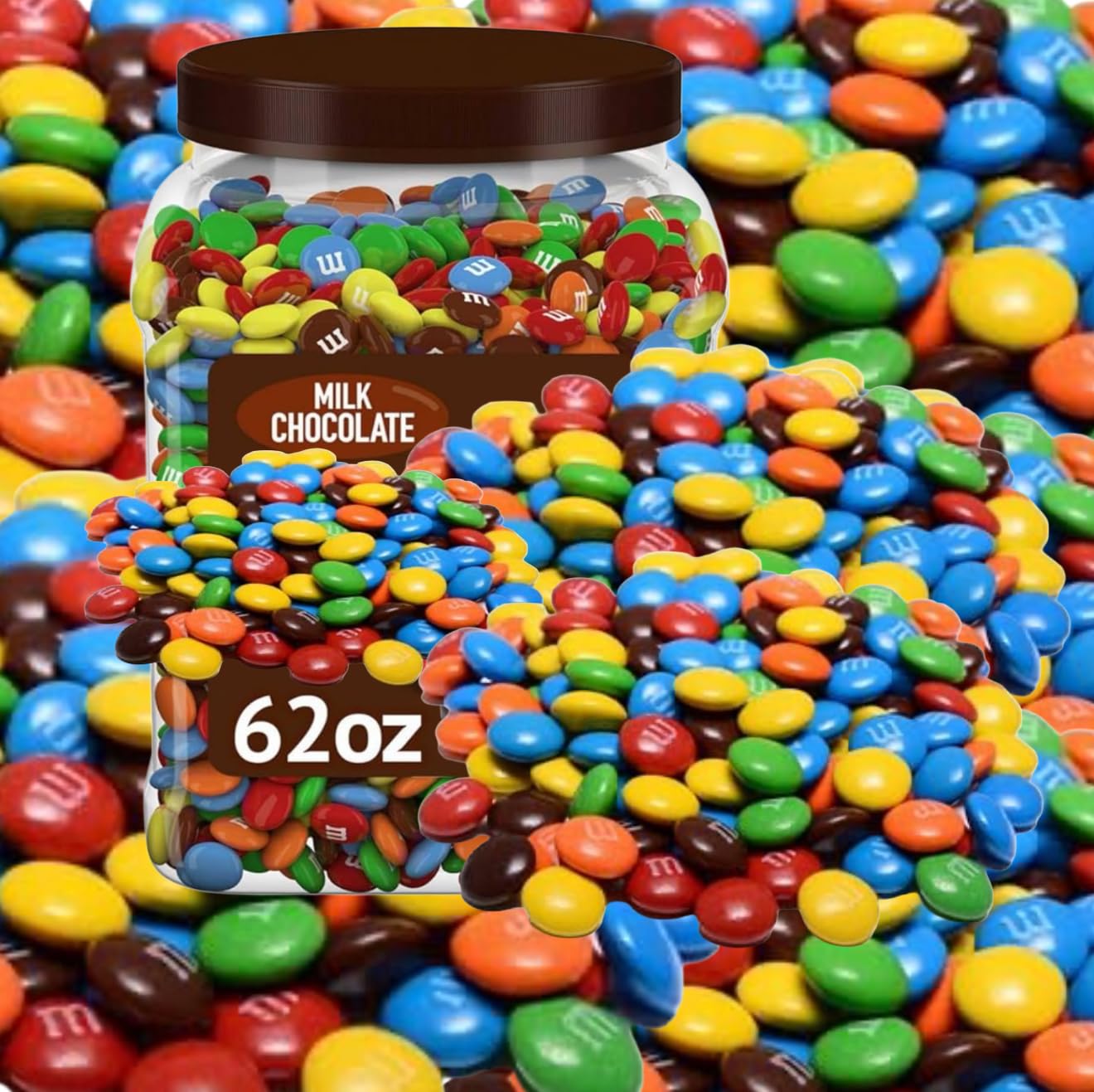 Indulge in the irresistible taste of chocolate candy with this 62 oz jar! This massive container is filled to the brim with the iconic candy-coated chocolates, perfect for sharing with family and friends or satisfying your own cravings. The colorful mix of red, yellow, blue, green, orange, and brown candies offers a delightful blend of milk chocolate encased in a crisp candy shell. Whether you're hosting a party, movie night, or just want a tasty snack at hand, this 62 oz jar ensures you'll never run out. Enjoy the classic taste and fun of in every bite, making it a beloved treat for all ages. Indulge in this massive jar and let the 'milk chocolate melt in your mouth, not in your hand' experience last and last.