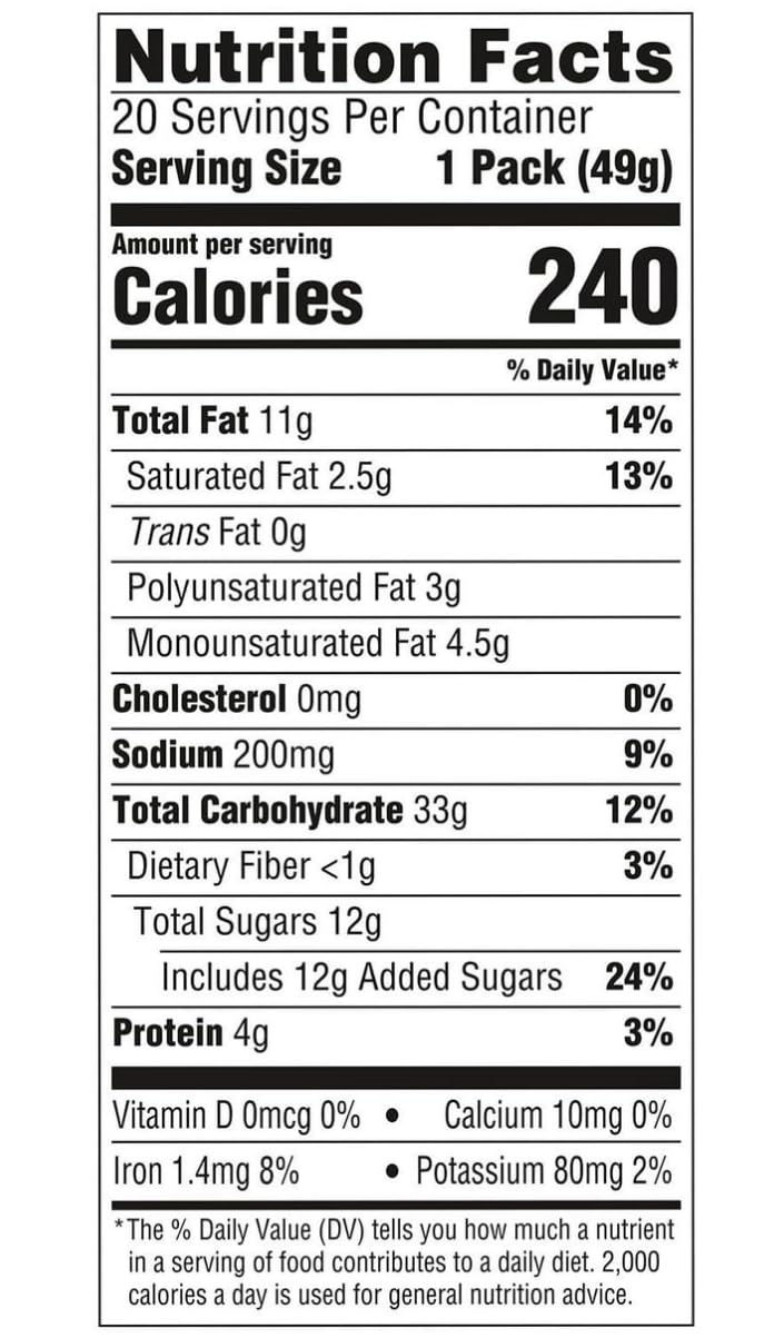 Enjoy a satisfying and delicious snack with these peanut butter sandwich cookies. Each pack contains 6 cookies made with mildly sweet cookie-crackers and a generous layer of real peanut butter. With 4g of protein per pack and no high fructose corn syrup, it’s the perfect treat for lunchboxes, school breaks, or mid-day cravings. This listing includes 2 boxes of 20 packs (total of 40 individually wrapped packs), ideal for stocking up your pantry or sharing with family and friends. ✔️ 40 single-serve packs (1.75 oz each) ✔️ 6 sandwich cookies per pack ✔️ Net weight: 4.363 lbs ✔️ Kosher dairy