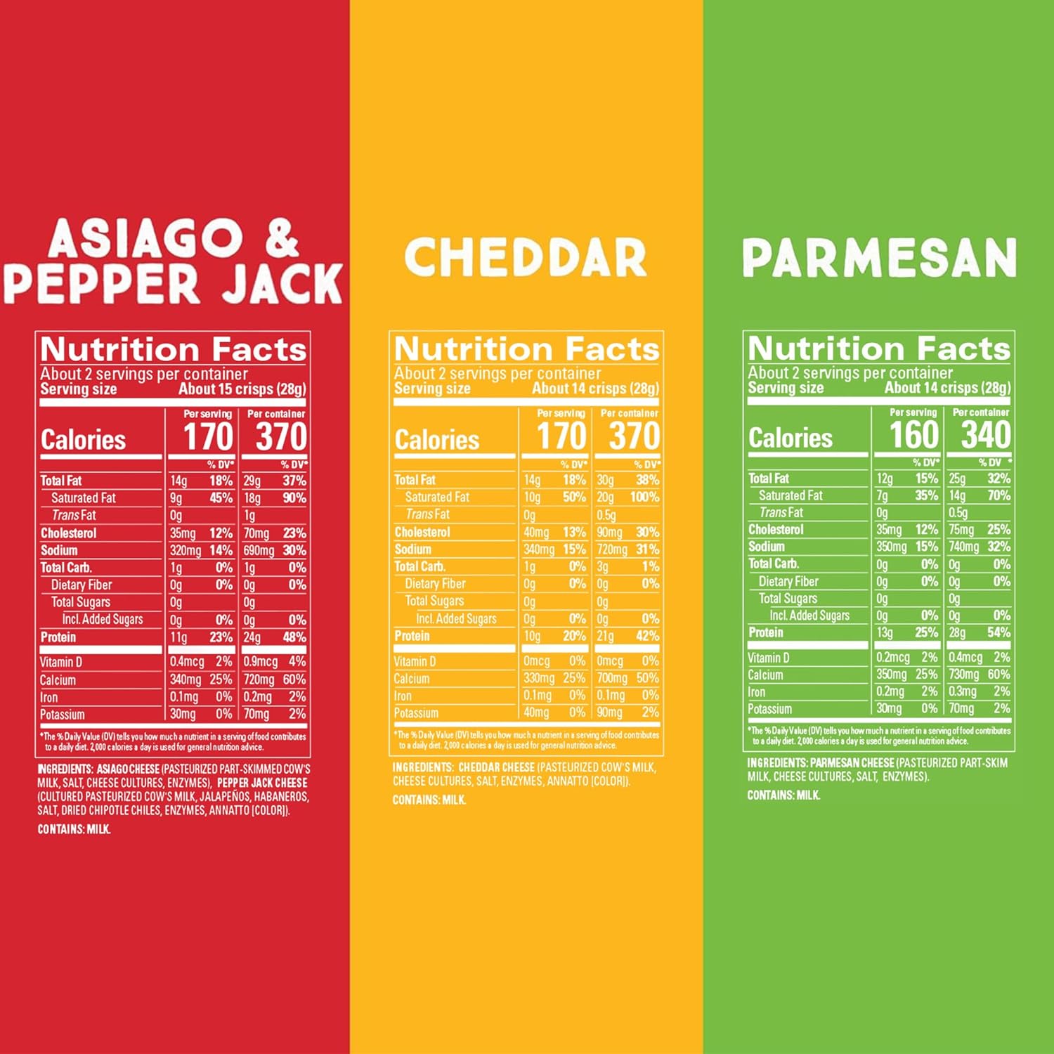 | Flavor | Parmesan, Cheddar Cheese, Asiago & Pepper Jack |
