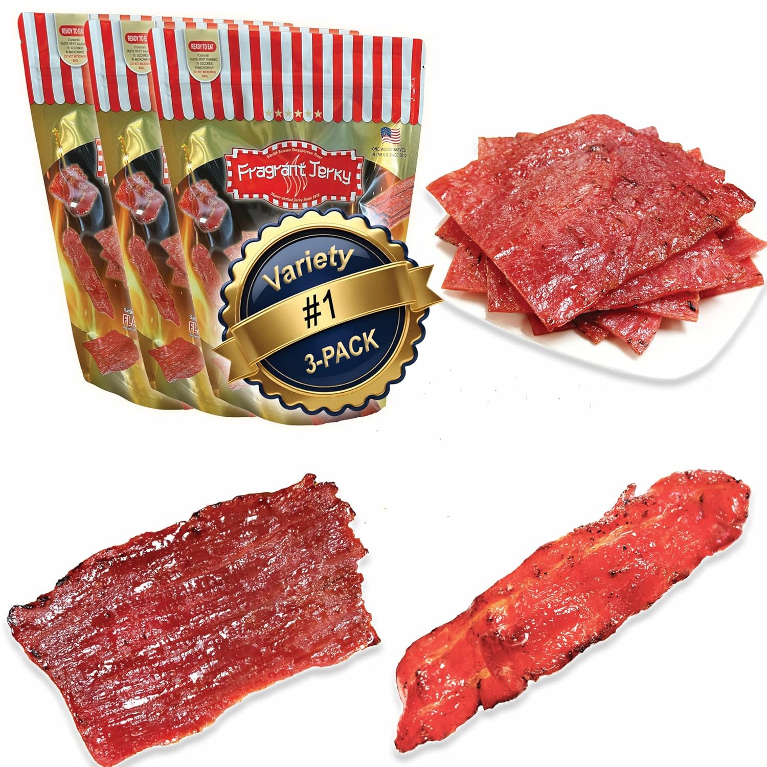Taste Profile, Product Expiration & Storage: East Asian flavor profile with a lightly sweet taste, a light glaze, a smoky barbecue aroma, and a semi-dried texture. Our jerky products reflect the taste characteristics of Asian Pacific cultures. Please consider this flavor style before purchasing to avoid incorrect expectations. Our products contain East Asian ingredients and spices (see the “Ingredients”). Product Expiration & Storage: Product expiration date is 45 days from the packed date (printed on the packaging). After opening, refrigerate and consume within 2 weeks. At room temperature, consume within 3 days. Freezer storage up to 9 months (reheat in a microwave before consuming).