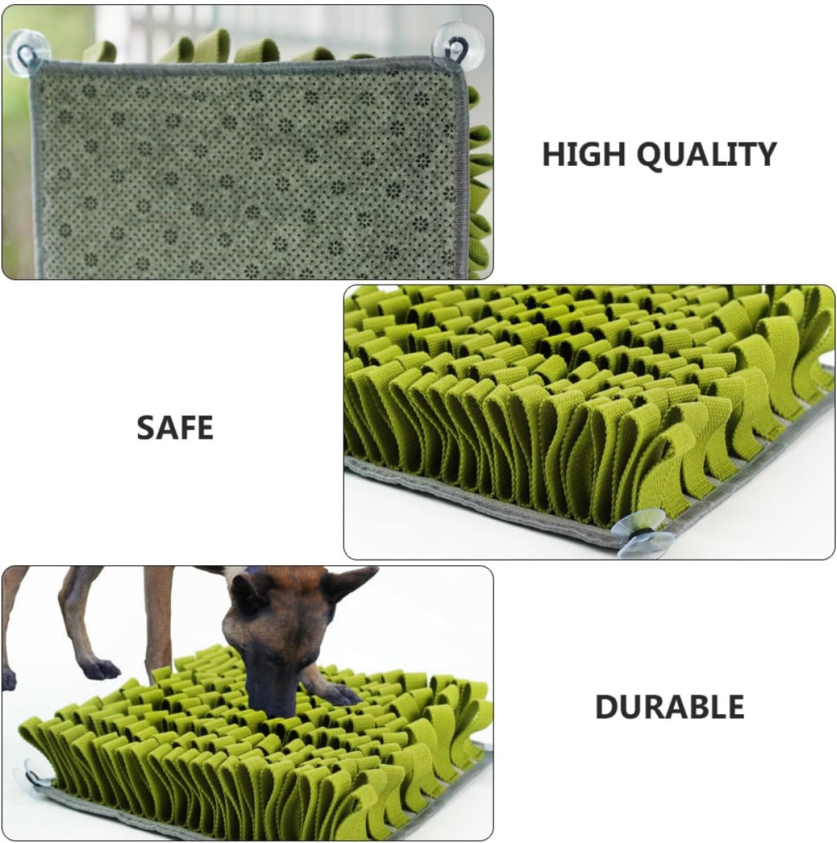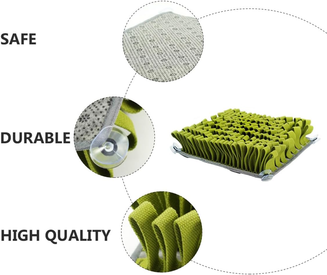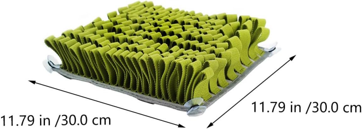 Package Include 1 x Dog Sniffing Mat Characteristics -Size: 30x30x5cm/11.79x11.79x1.97in Pet Snuffle Pad -Material: Plush Pet Foraging Cushion -Color: Dark green Pet Dog Sniffing Pad - 4 suction cups can be attached to the ground to the -slip effect Dog Cushion . - Reduce litter picking outside, release extra energy for dogs, and exercise slow eating Pet Feeder. - It gains self-satisfaction through sniffing while relieving stress and releasing excess energy Dog Snuffle Feeding Mat. - Made from material, and to use Pet Slow Feeder. - The bottom is nonslip, which holds the mat and prevents the dog from moving the mat Pet Feeding Pad.Goods DescriptionPet Feeder Pet dog with foraging instinct will love this sniffing mat, can be cleaned easily, convenient for use.Dog Feeding Mat To meet the dog's sniffing needs, reduce the pressure on the dog, and the dog's sniffing ability.Pet Slow Feeder Also, a interactive puzzle , exercises the dog's sense of smell, like the hunt for food