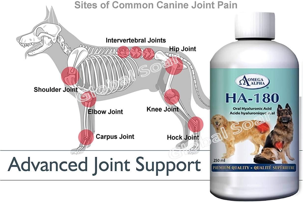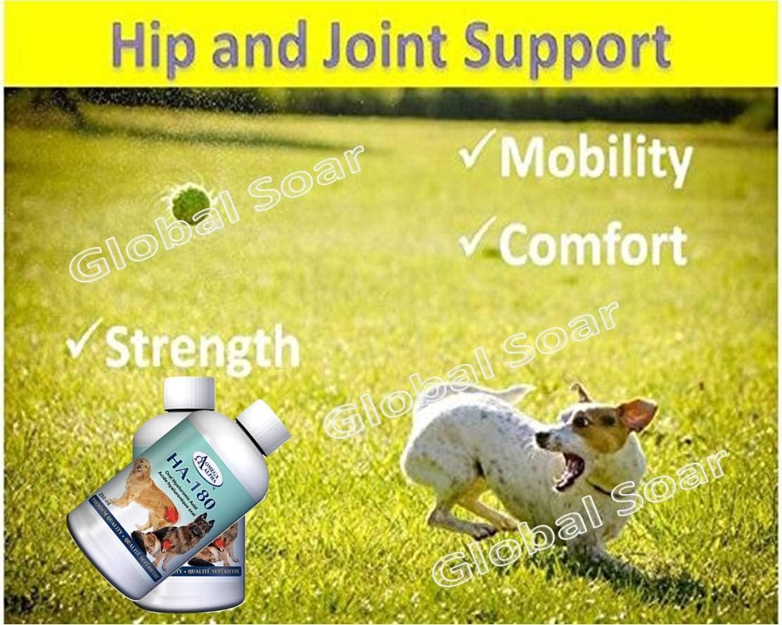 INGREDIENT PER 1 mL: Hyaluronic Acid…………………………………..6 mg Directions by animal body weight: 1 – 10 lbs | 0.5-4.5 kg………………………… ¼ teaspoon (1.25 mL) daily 11–20 lbs | 5-9.1 kg ………………………….. .1/2 teaspoon (2.5 mL) daily 21–40 lbs | 9.5-18.2 kg ……………………….1 teaspoon (5 mL) daily 41– 75 lbs | 18.6-34.1 kg………………………1-1/2 teaspoons (7.5 mL) daily 76–100 lbs| 34.5-45.5 kg …………………….2 teaspoons (10 mL) daily > 100 lbs | 45.5 kg …………………………… ..2.5 teaspoons (12.5 mL) daily Can be added to animal’s food. 1 to 2 times per day in meals or for best results, directly into the mouth. Storage: Shake well before use. Refrigerate after opening. Consume within six (6) months after opening.