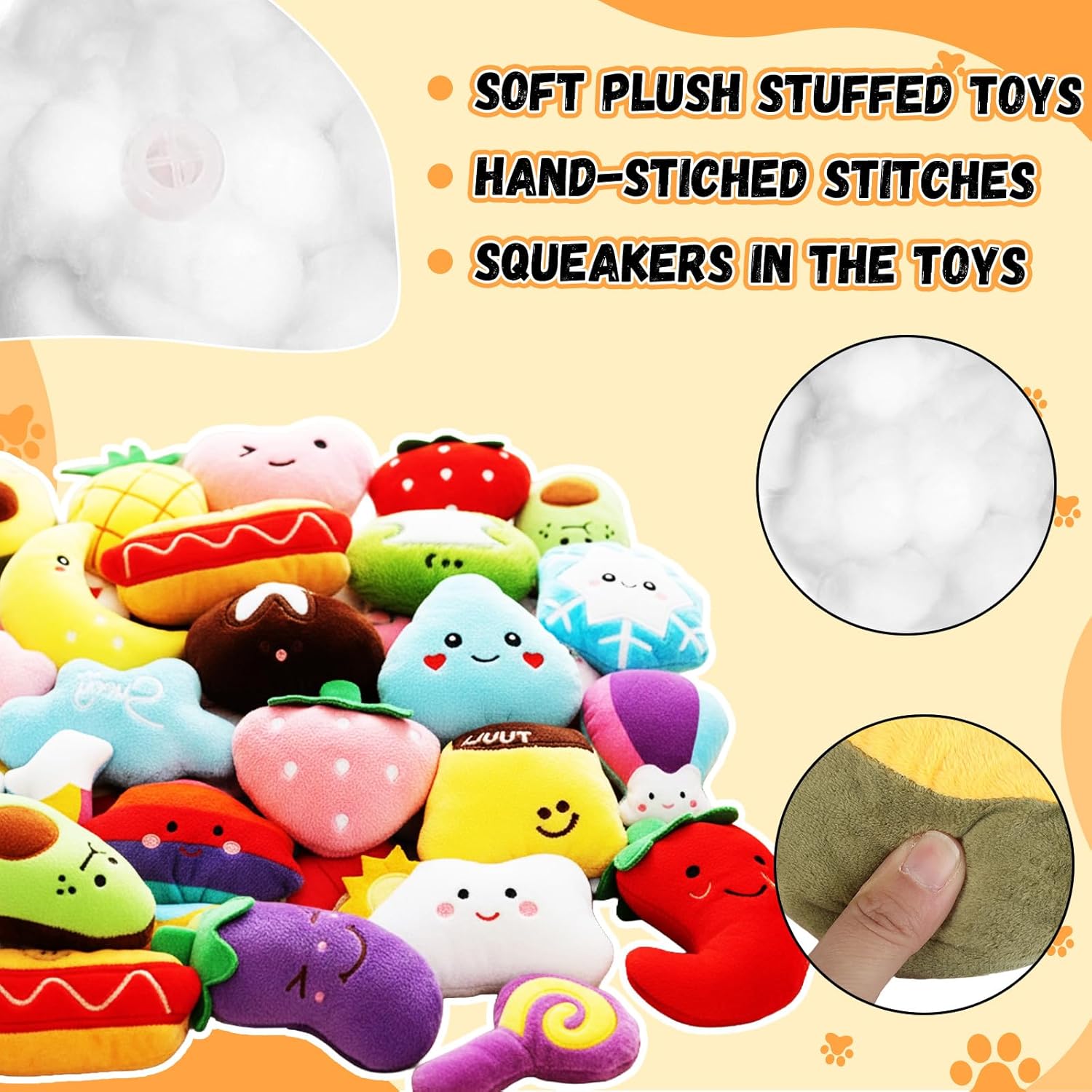 Features: The dog toy bag has bright colors, vivid shapes, squeaky and cute, can arouse the interest of the dog, will become your dog's nice friend, and has a very good decompression effect. Even if you're busy, your dog won't get bored or lonely ruining household items. Puppy chew toys are not sturdy and not intended for strong chewing, so we recommend that your puppy play with them under supervision. Specifications: Material: plush and cotton Color: show as the pictures Package includes: 80 x Puppy chew toys Notes: Manual measurement, please allow slight errors on size. The color may exist a slight difference due to different screen displays. Not for large aggressive dog