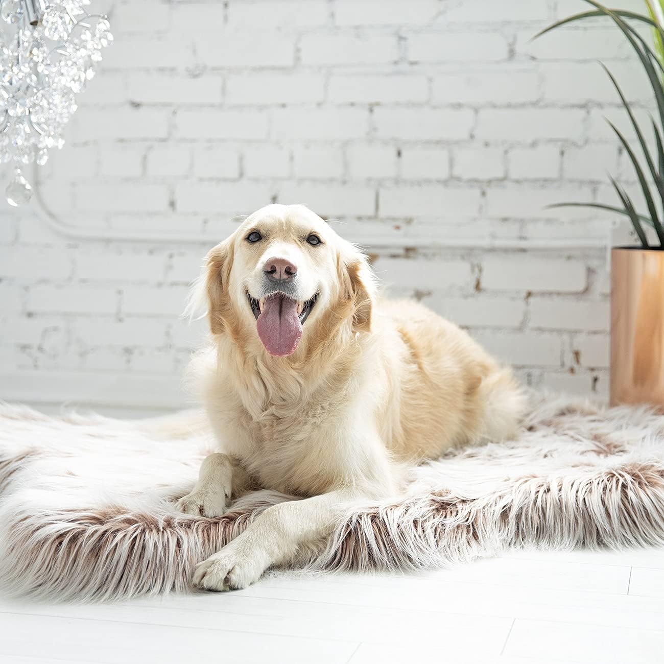 The SnooZZy Glam Pet Orthopedic Rug is a unique pet bed covered in glamorous long, ultra-plus faux fur with warm ombre tones that adds a stunning addition to any room in your home. Designed with a beautiful animal hide shape, the Glam Pet Orthopedic Rug has 2 inches of premium gel topped foam that will provide orthopedic comfort and support for your pet. For added convenience and to help keep your pet's bedding area fresh, unzip the hidden zipper and machine wash the cover. Give your pet a glamorous place to spread out and relax with a Glam Pet Orthopedic Dog Rug.