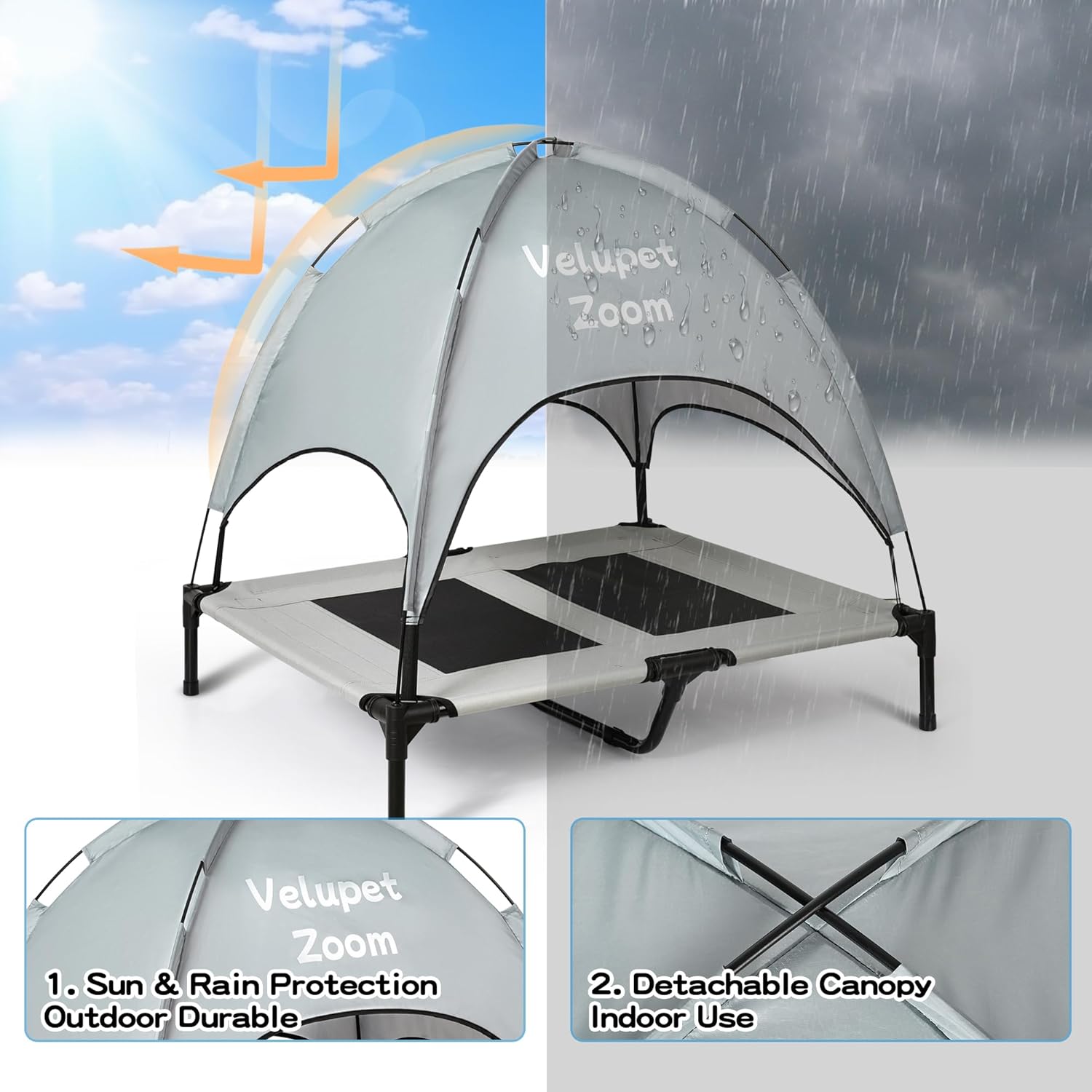 | Included Components | 36in Elevated Outdoor Dog Bed Gray,Dog Car Seat Cover for Back Seat,Dog Tie Out Cable 50ft,Collapsible Double Pet Bowls |
