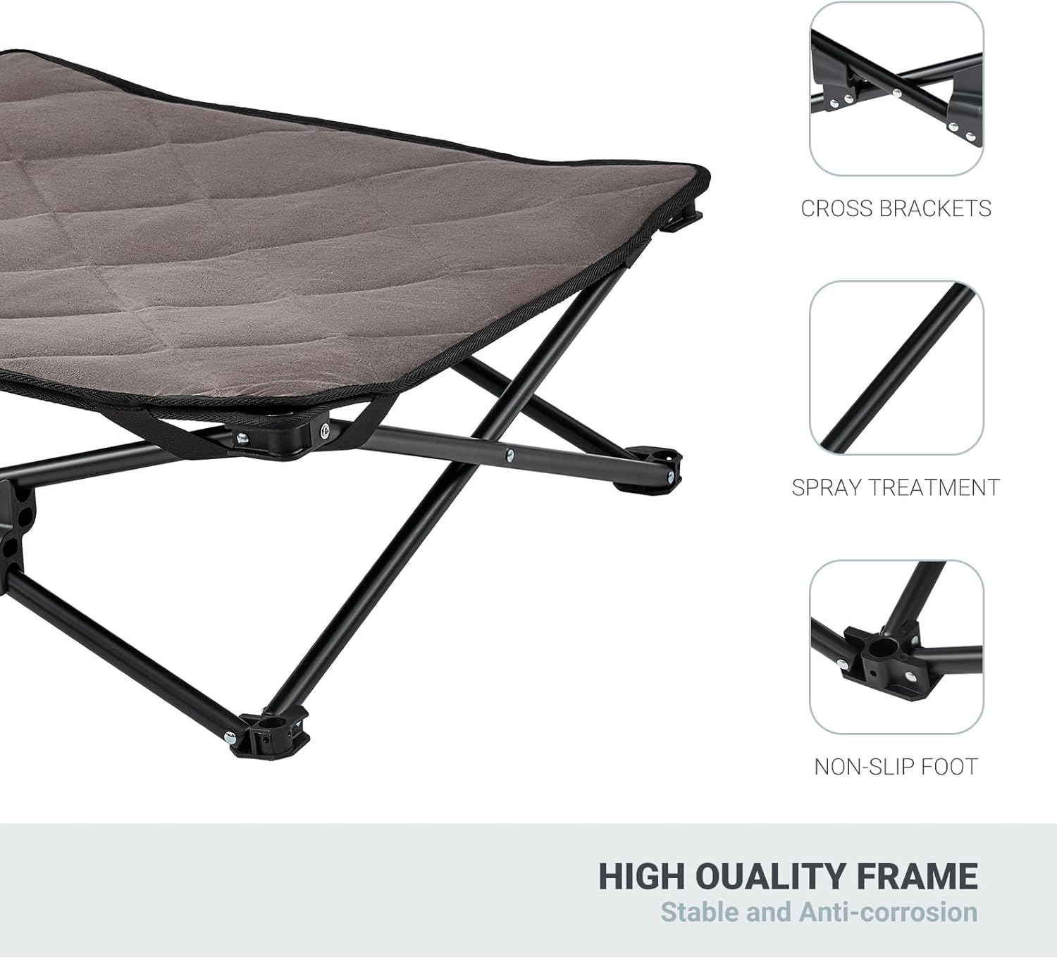 | Product Benefits | Elevated design for breathability and easy cleaning, portable for travel and camping. |