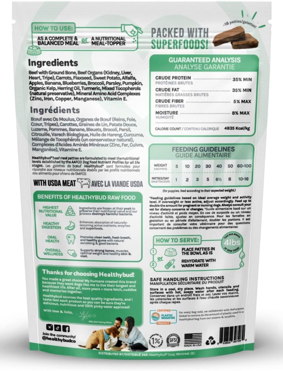 | Special Ingredients | Beef Organs (Kidney, Heart, Liver, Tripe), Carrot, Flaxseed, Sweet Potato, Pumpkin, Blueberry, Kelp, Herring Oil, Turmeric |