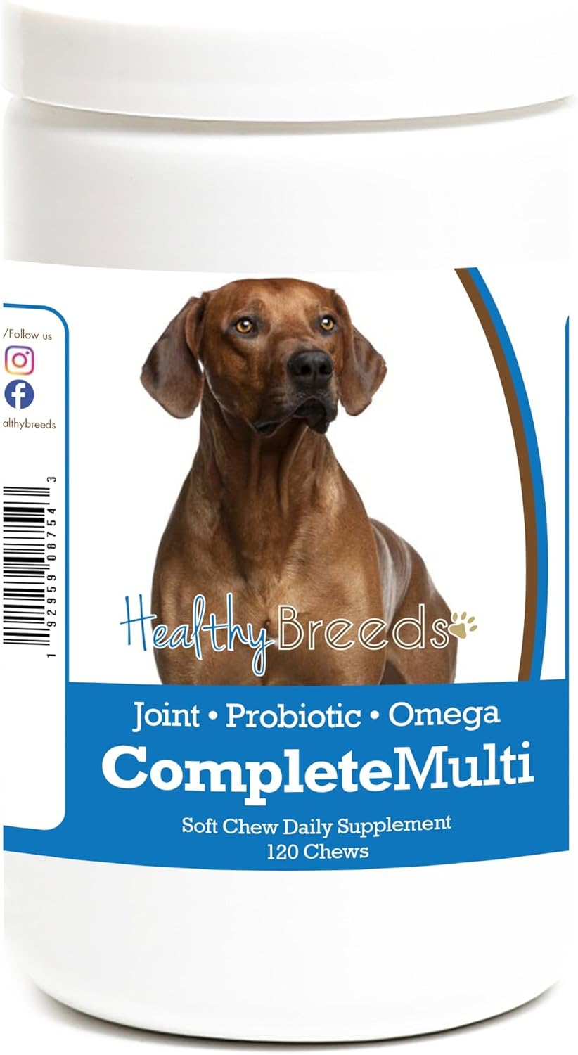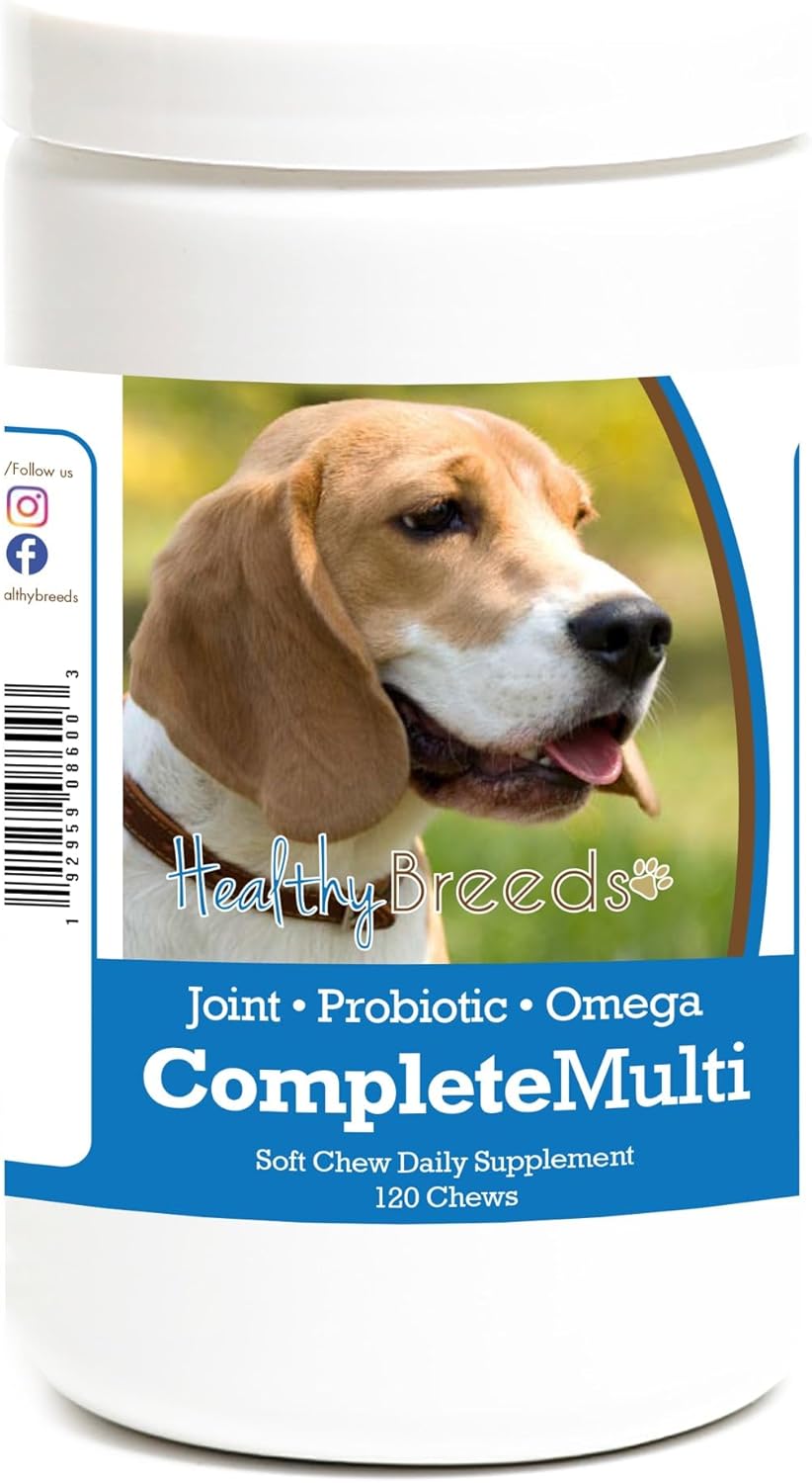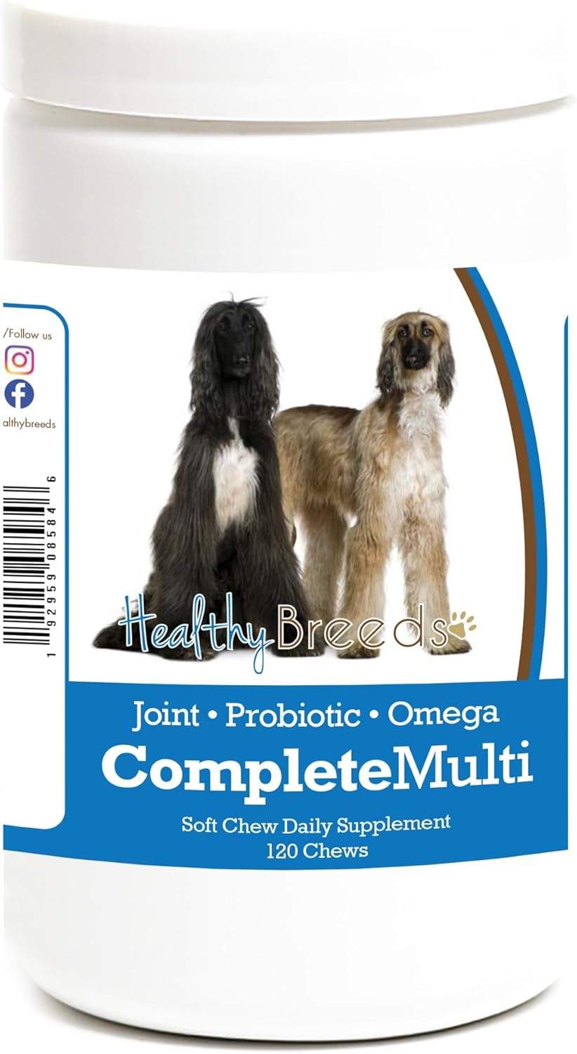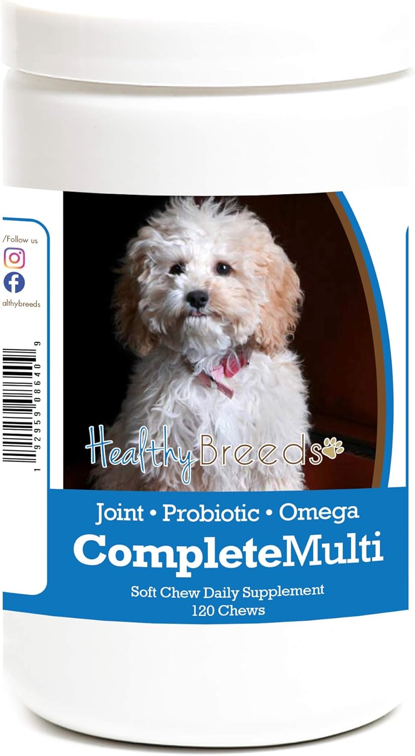 Healthy Breeds All In One Complete Multivitamin Soft Chews are a daily multivitamin with additional ingredients that help support your pup from head to tail! The added benefits of these complete canine supplements include hip & joint support, skin & coat support and a probiotic digestive aid. These tasty morsels make it so easy to ensure that your dog is getting all the support they need to live a healthy and happy life!