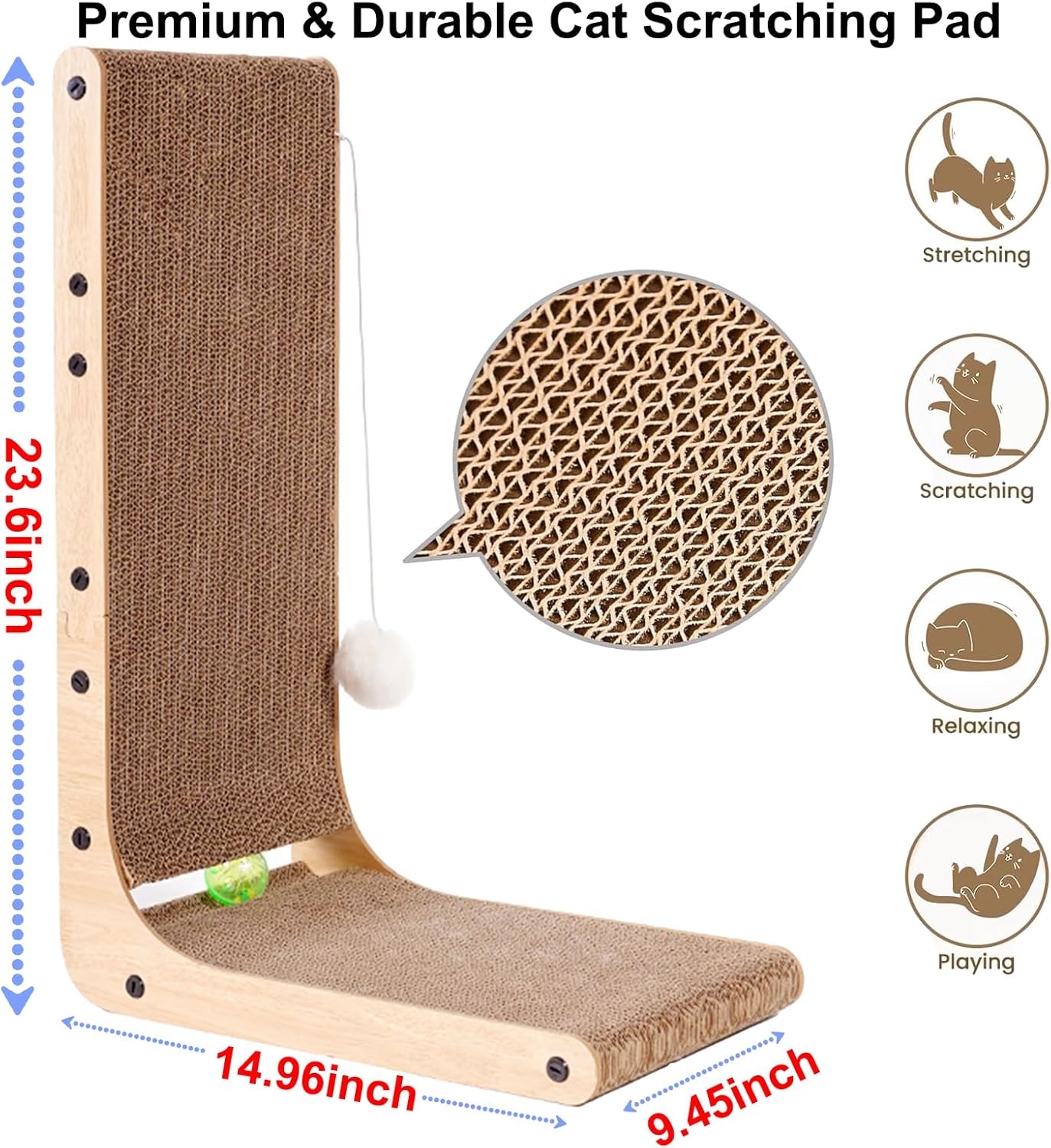 | Model Name | L Shaped Vertical/Horizontal Cat Scratching Board with Fuzzy Cat Toy Balls |