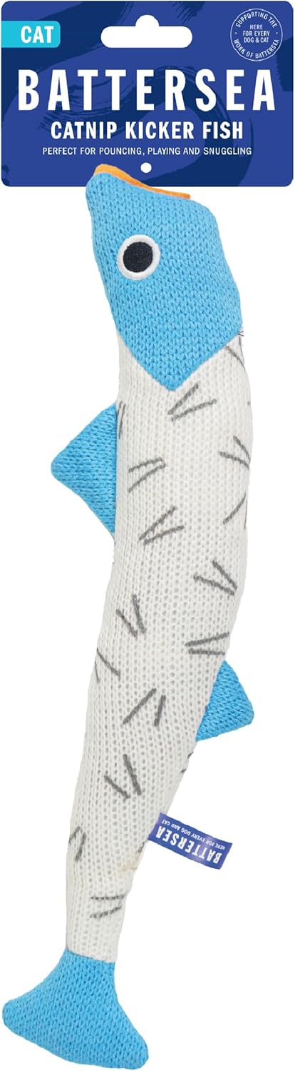 The Battersea Kicker Fish is the perfect grab toy for cats! Over 30cm long and infused with catnip, your kitty will be able to easily kick with their hind paws whilst remaining engaged and excited. This toy also comes in another print, collect both for a whole host of fun!