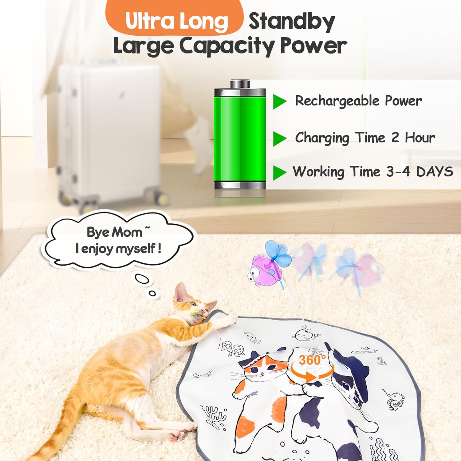 | Included Components | Hide and Seek, Chase the Feather, Holes Mice Whack-A-Mole, Catch Magic Wand, Moving Flying Fish |
