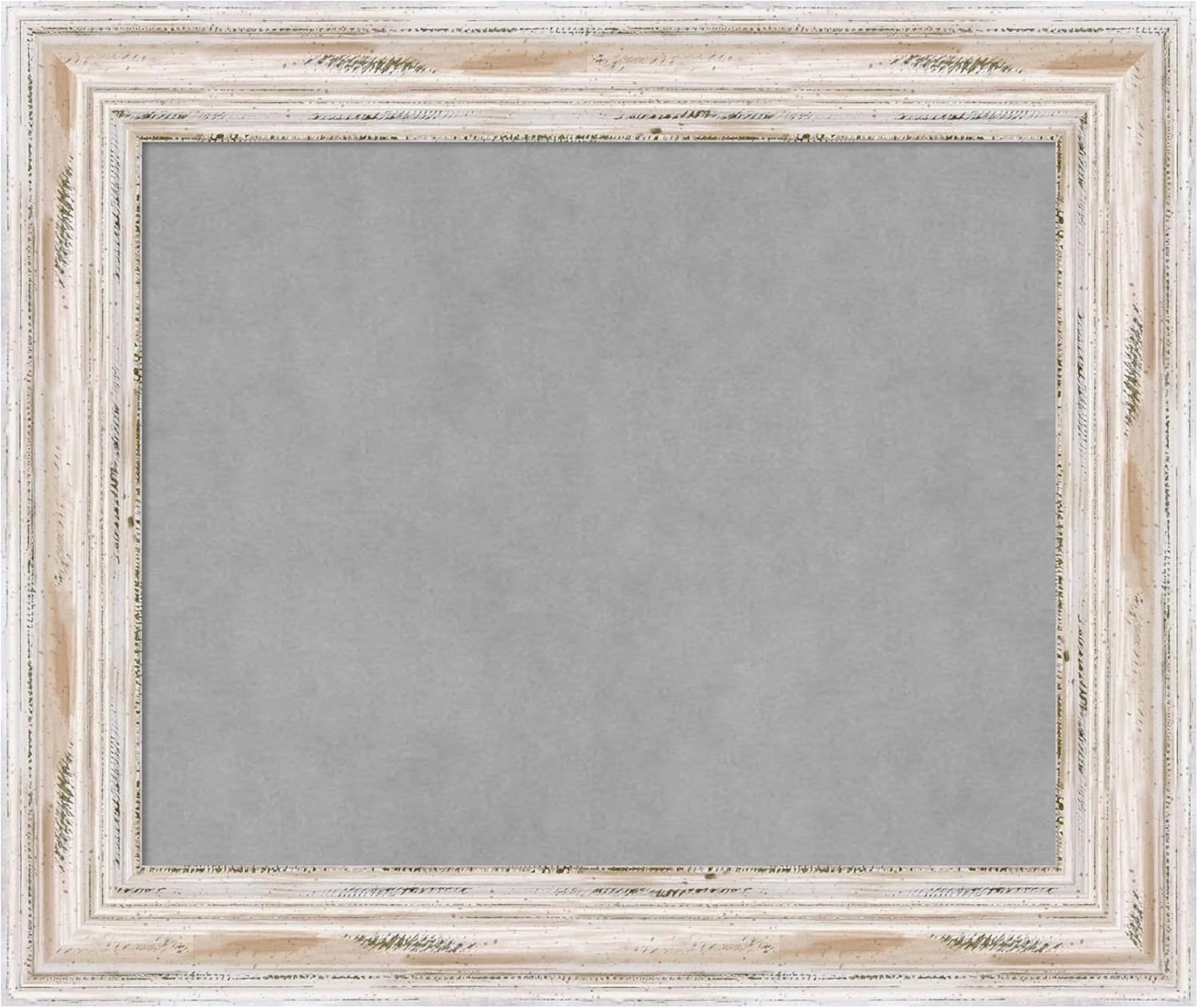 PRODUCT: Magnetic Board 28x20, Alexandria White Wash Narrow; FRAME: Alexandria White Wash Narrow; FRAME FINISH: Distressed; FRAME COLOR: White; OUTER SIZE: 31 x 23 inches. The Alexandria White Wash Narrow frame features a whitewashed frame with outer edge accents. The creamy white finish has tan distressing and weathered patches. A beautifully framed magnetic board becomes a decoration for your wall as well as to free up desk or counter space. Whether it is a board of to-dos, coupons, calendars, or a showcase of artwork from your kids, Amanti Art magnetic boards make organization easy and beautiful. Perfect for home use in entryways, kitchens, mudrooms, or laundry rooms and durable enough to use in an office or a corporate environment. Individually made using traditional custom framing techniques, it has the quality you would expect from your local frame shop. Because of our attention to detail and focus on artistry, architects, interior designers, and homeowners alike choose this magnetic board to create beautiful living spaces.