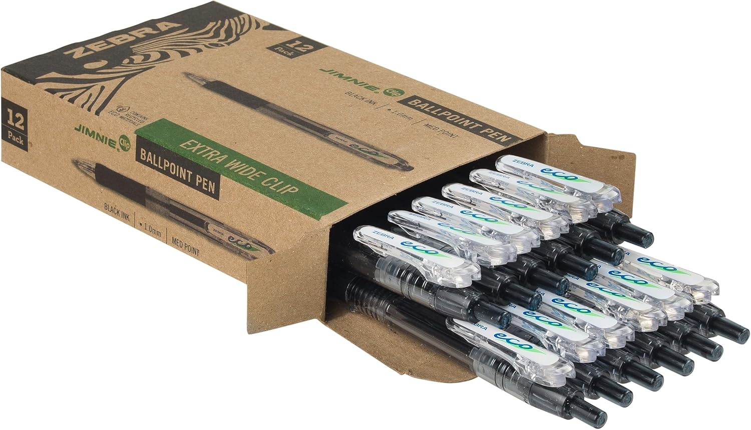 Product Description These nature-friendly pens are made up of post-consumer material and environmentally responsible. With an ultra-soft rubber grip you'll be able to write with total control and comfort. The extra wide binder clip lets you attach it to a variety of stationary such as legal pads, binders, books and more! See-through barrel allows you to see how much ink you have left. From the Manufacturer Retractable ballpoint pen delivers neat, accurate lines with smooth-flowing ink. Design features a soft rubber grip for comfort and extra-wide clip that attaches to books, binders, legal pads and more. Clear barrel displays ink supply. Ballpoint pen is made with a high percentage of post-consumer material. Refillable with Zebra"s LH-Refill.