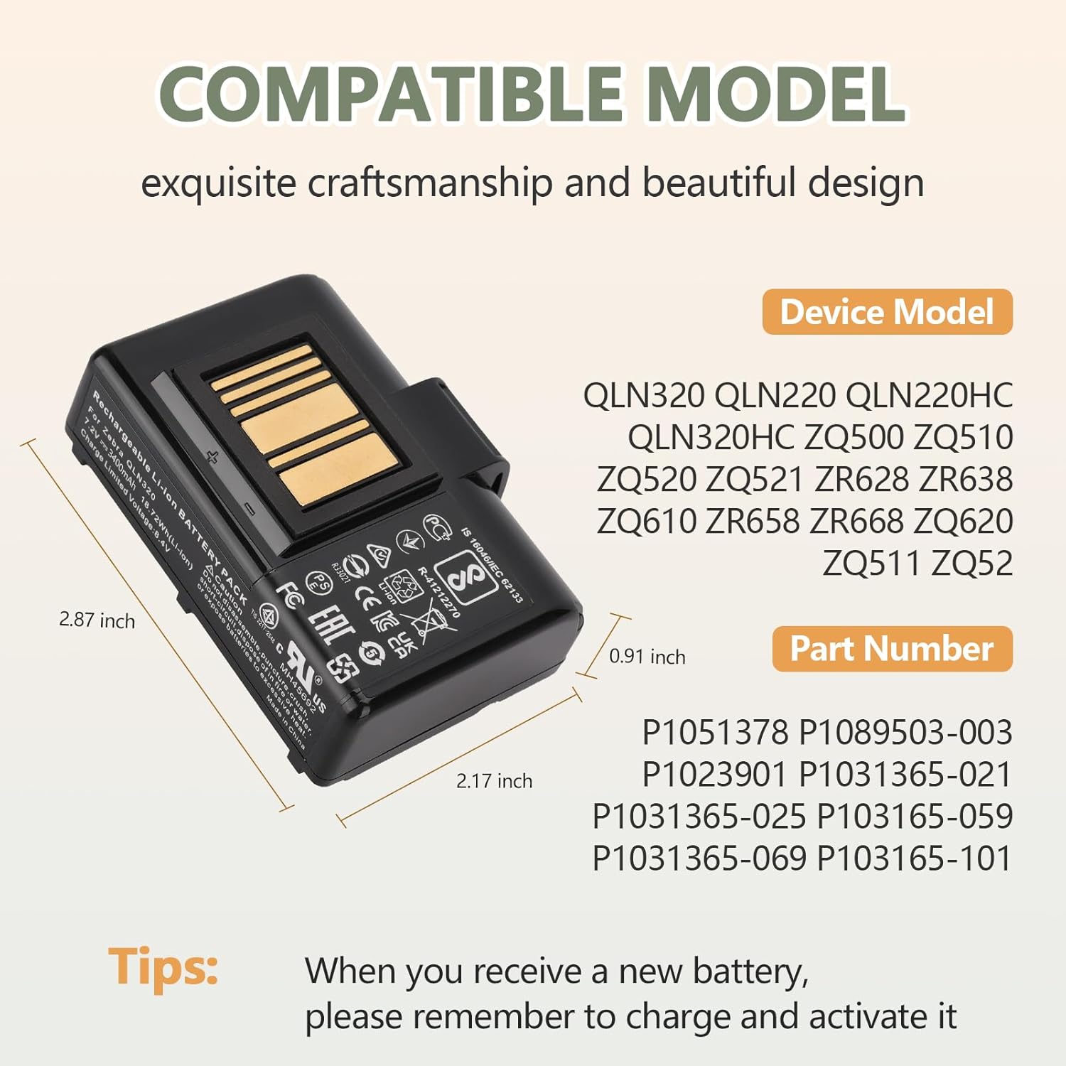 | Compatible Phone Models | Compatible with Zebra Mobile Printer QLN320 QLN220 QLN220HC QLN320HC ZQ500 ZQ510 ZQ520 ZQ521 ZR628 ZR638 ZQ610 ZR658 ZR668 ZQ620 ZQ511 ZQ52 |